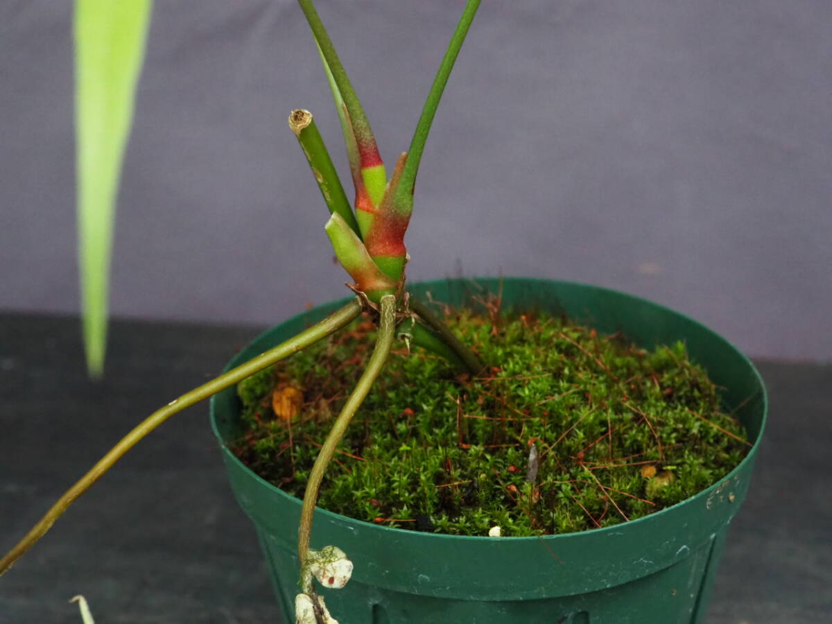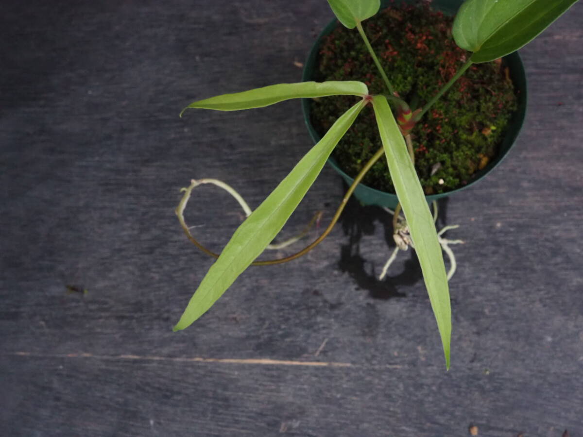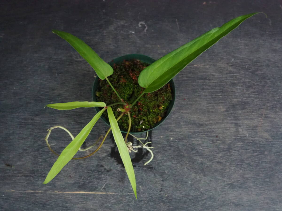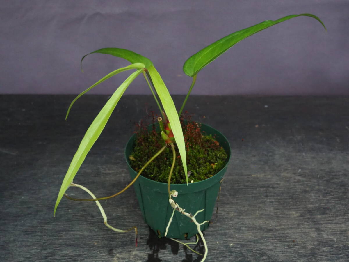 掌状の細葉を展開しながらツル状に生長するアンスリウム。