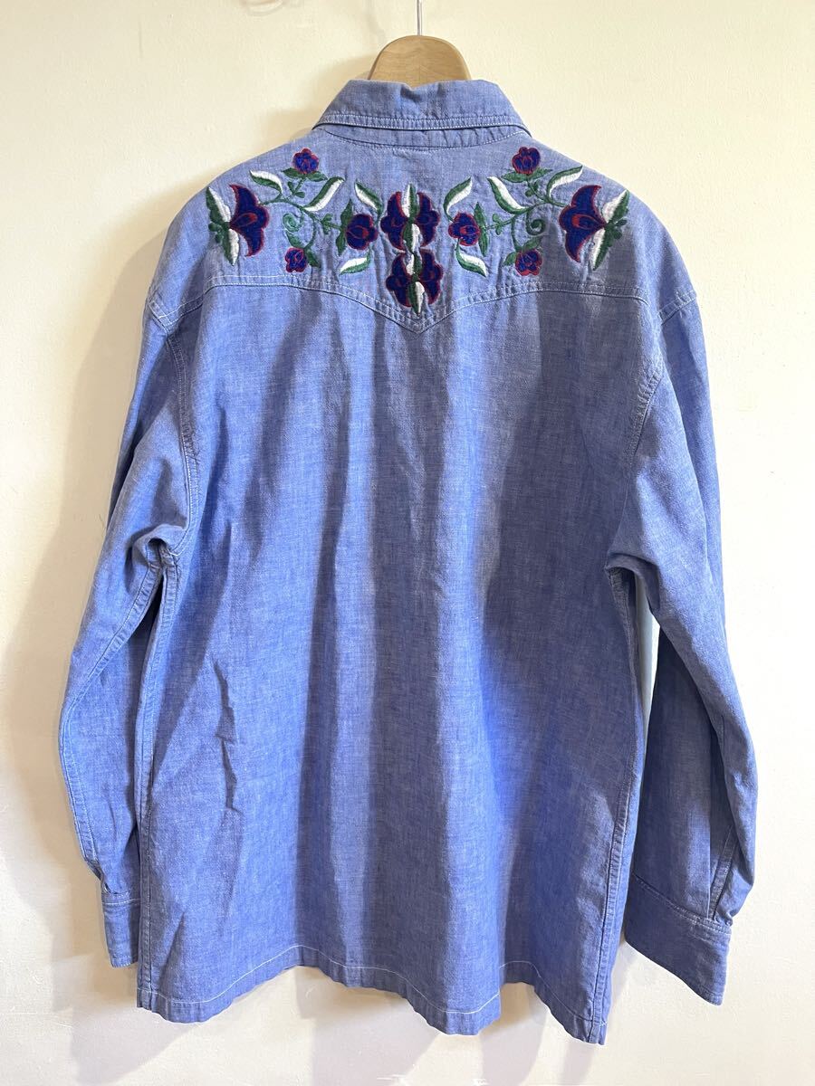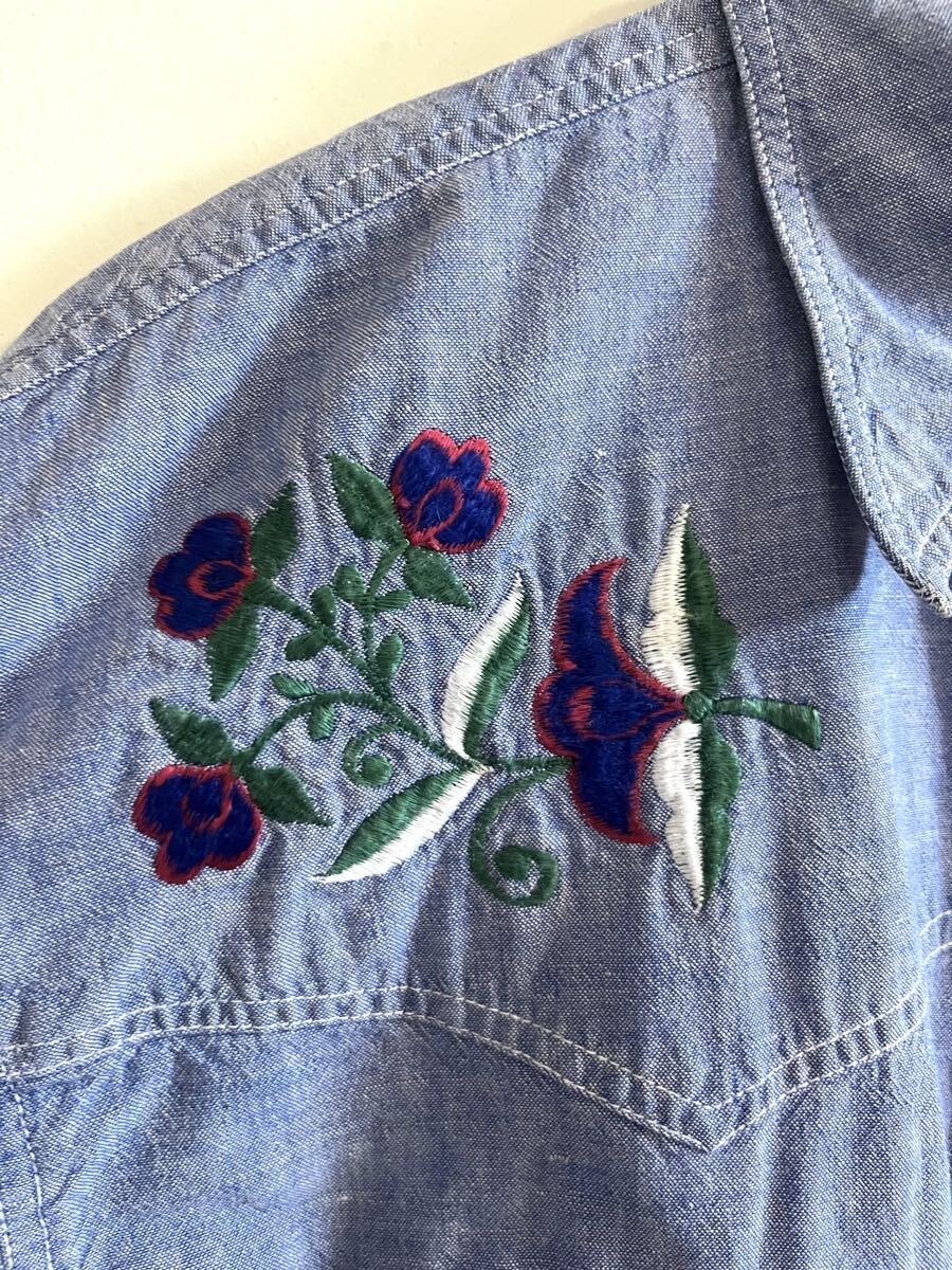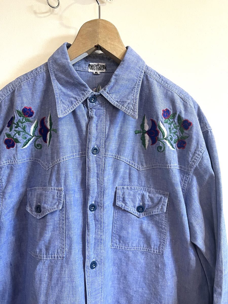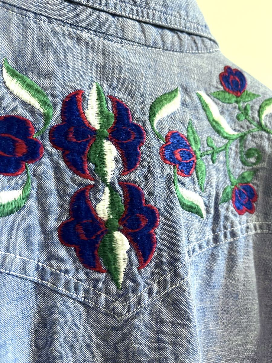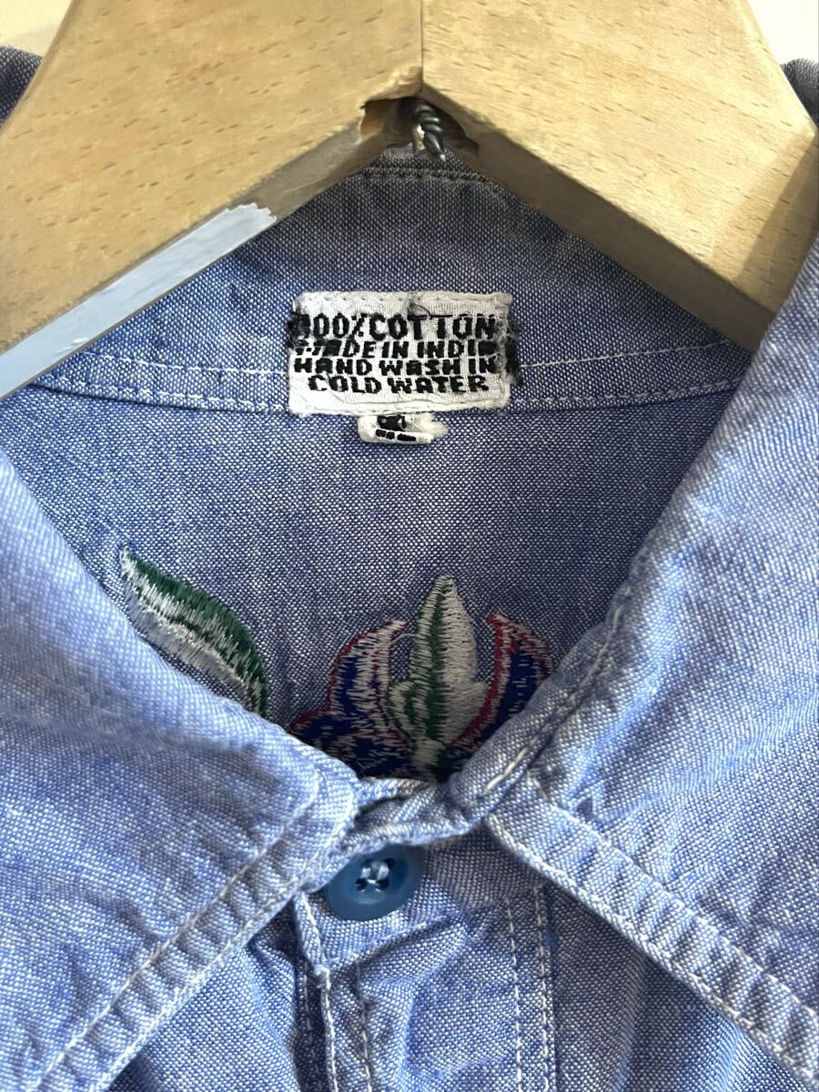 70'sビンテージ刺繍入りシャンブレーシャツLくらいヒッピー