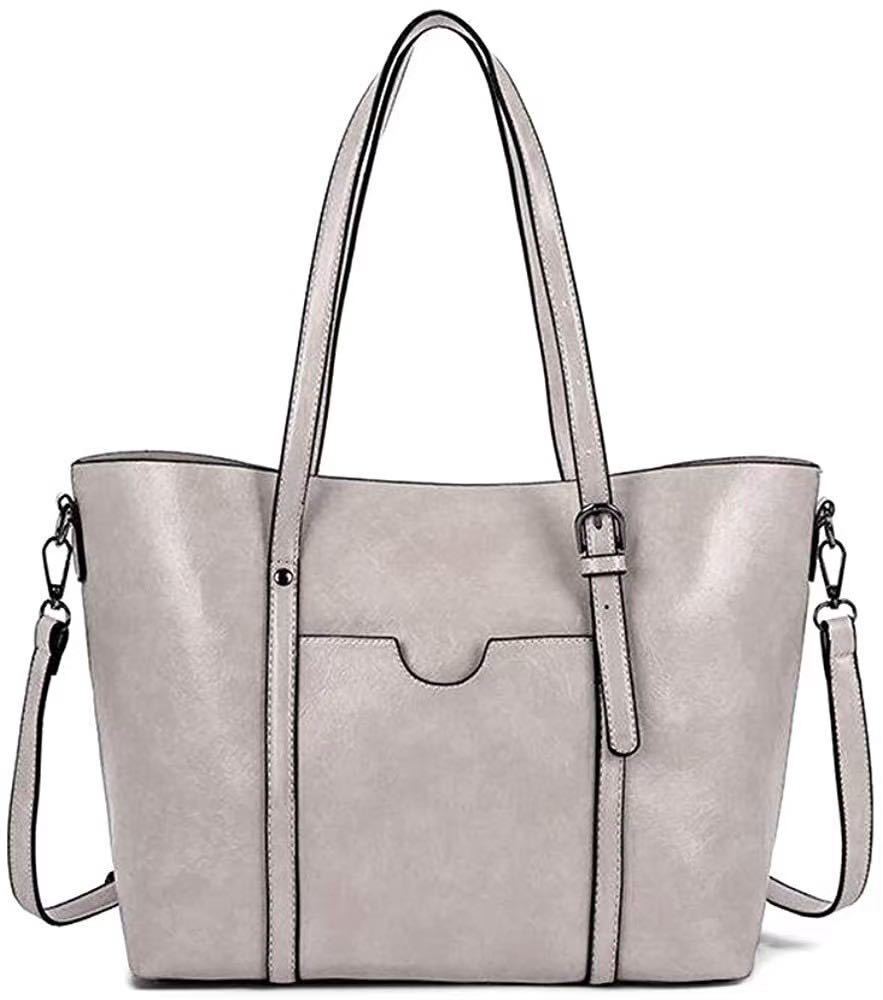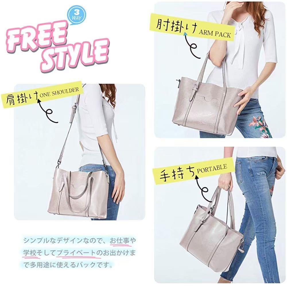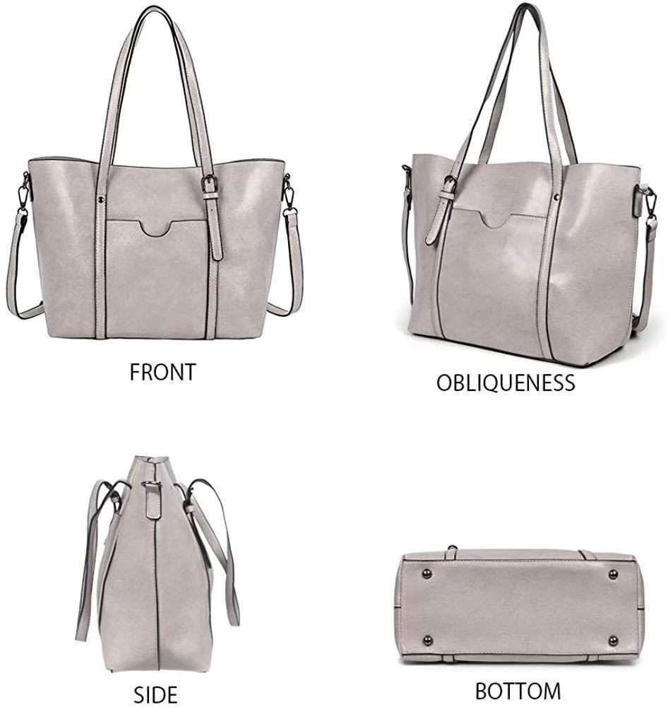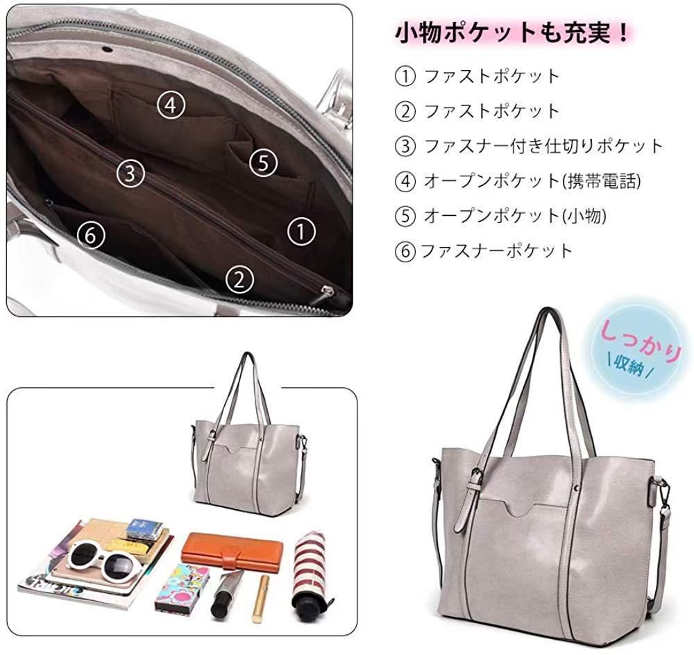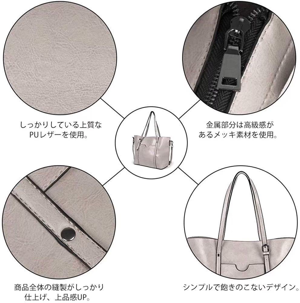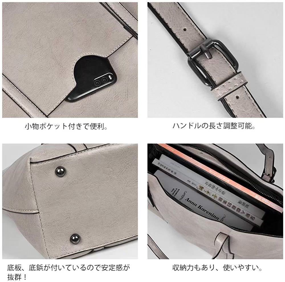 大人気♪ 2Way PUレザー ショルダーバッグ トートバッグ レディース ビジネス カジュアル 定番 シンプル 大人女子 グレー 灰色 114 M01