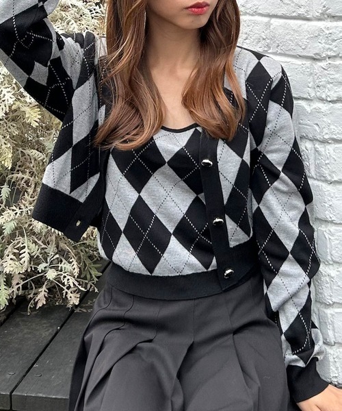 参考商品名:アーガイル柄ニットカーディガン+キャミSET
