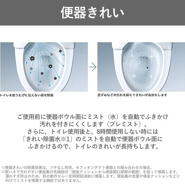 清潔機能:便器きれい、ノズルきれい、きれい仕上げ、セルフクリーニング、プレミスト、     クリーン便座(つぎ目なし)、クリーンノズル、クリーンケース、抗菌、フチなしウォシュレット、便ふた着脱、本体ワンタッチ着脱、ノズルそうじ