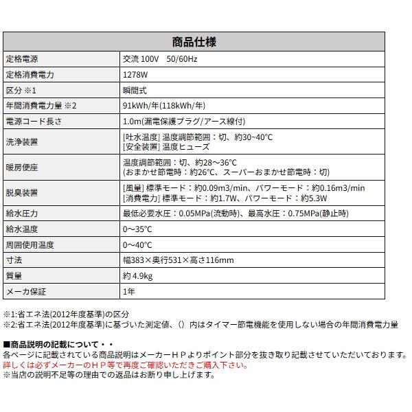 エコ機能:ダブル保温便座、スーパーおまかせ節電、タイマー節電