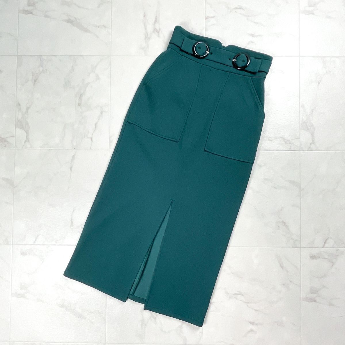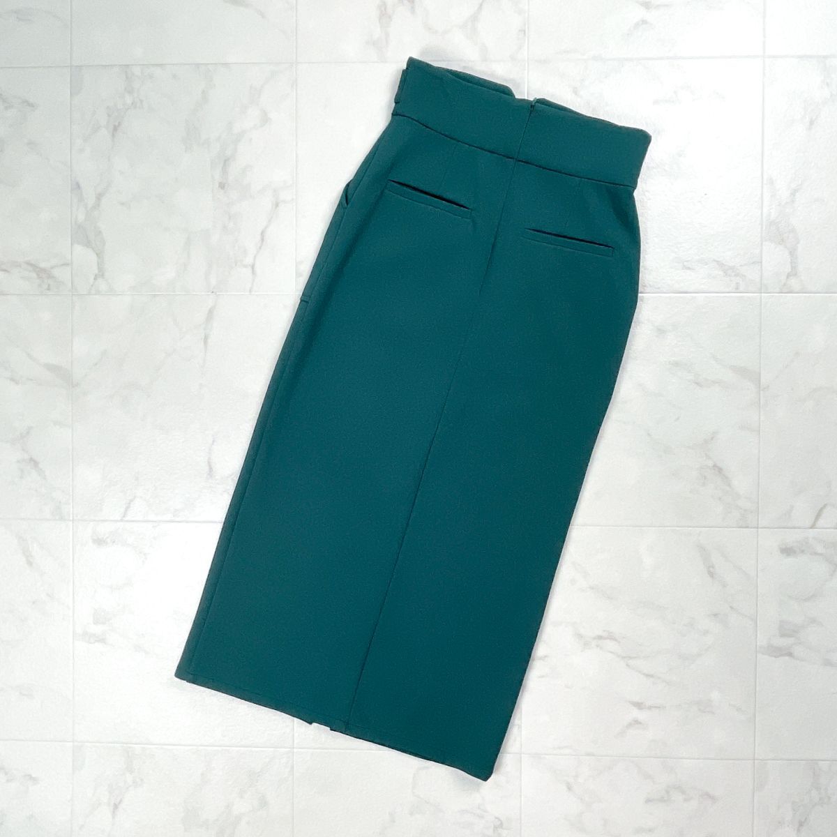 MURUA ムルーア フロントスリット ハイウェストタイトスカート 裏地なし ミモレ丈 グリーン 緑 サイズ1*GD725