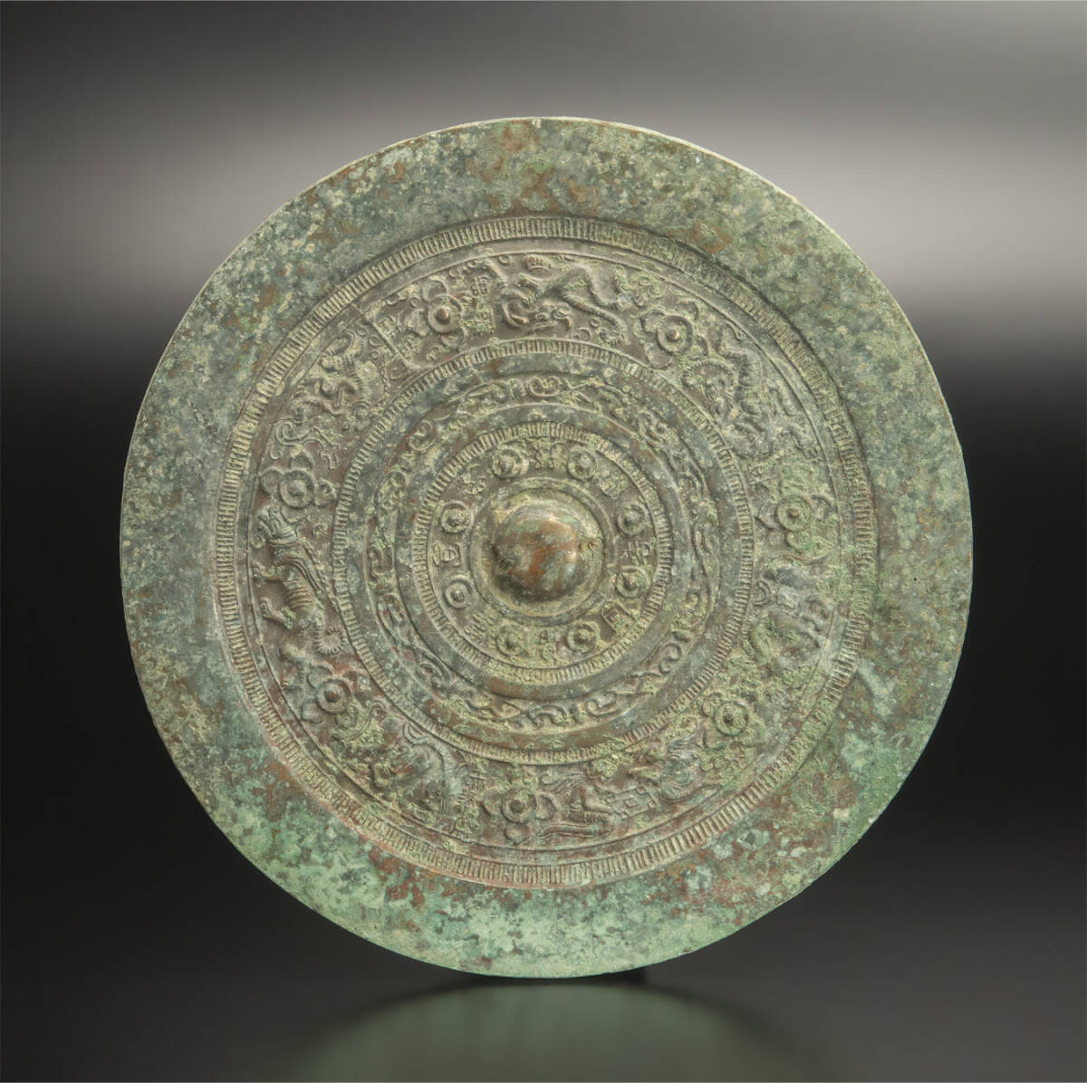 唐 青銅乳釘神人神獣鏡 中国 古美術