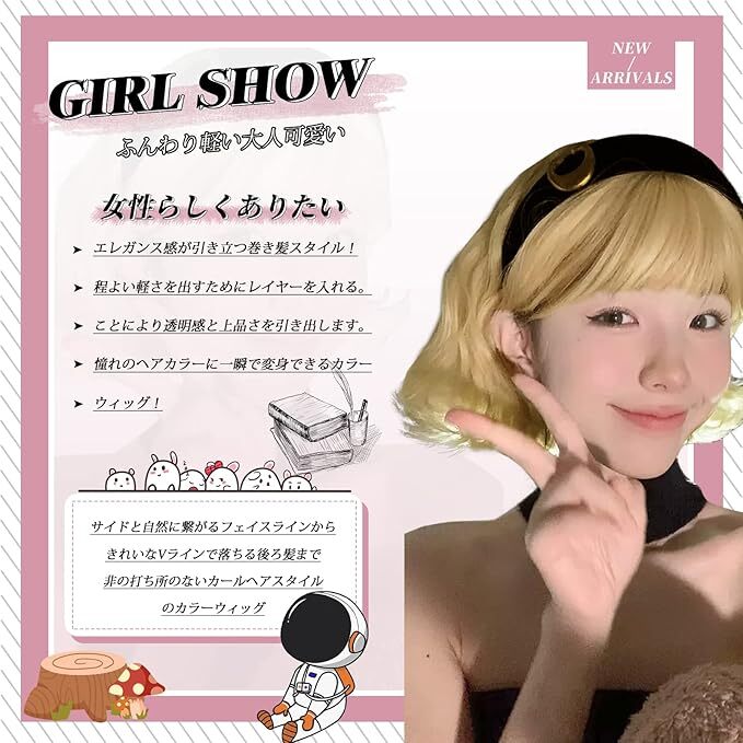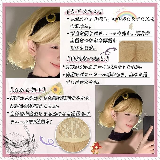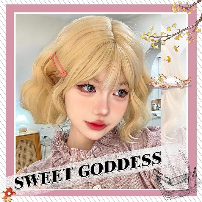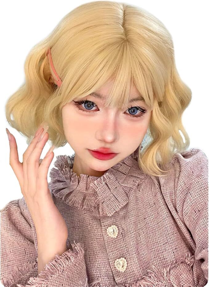 ◎Hawkko ウィッグ ショート 巻き髪 セミロング カール フルウィッグ かつら レディース ウェーブ カツラ ボブ 女装 ウィッグ 自然 ぱっつん 原宿系 小顔 人気 耐熱 wig ファッション ロリータ コスプレ ネット/櫛付き(白金色) | ||||