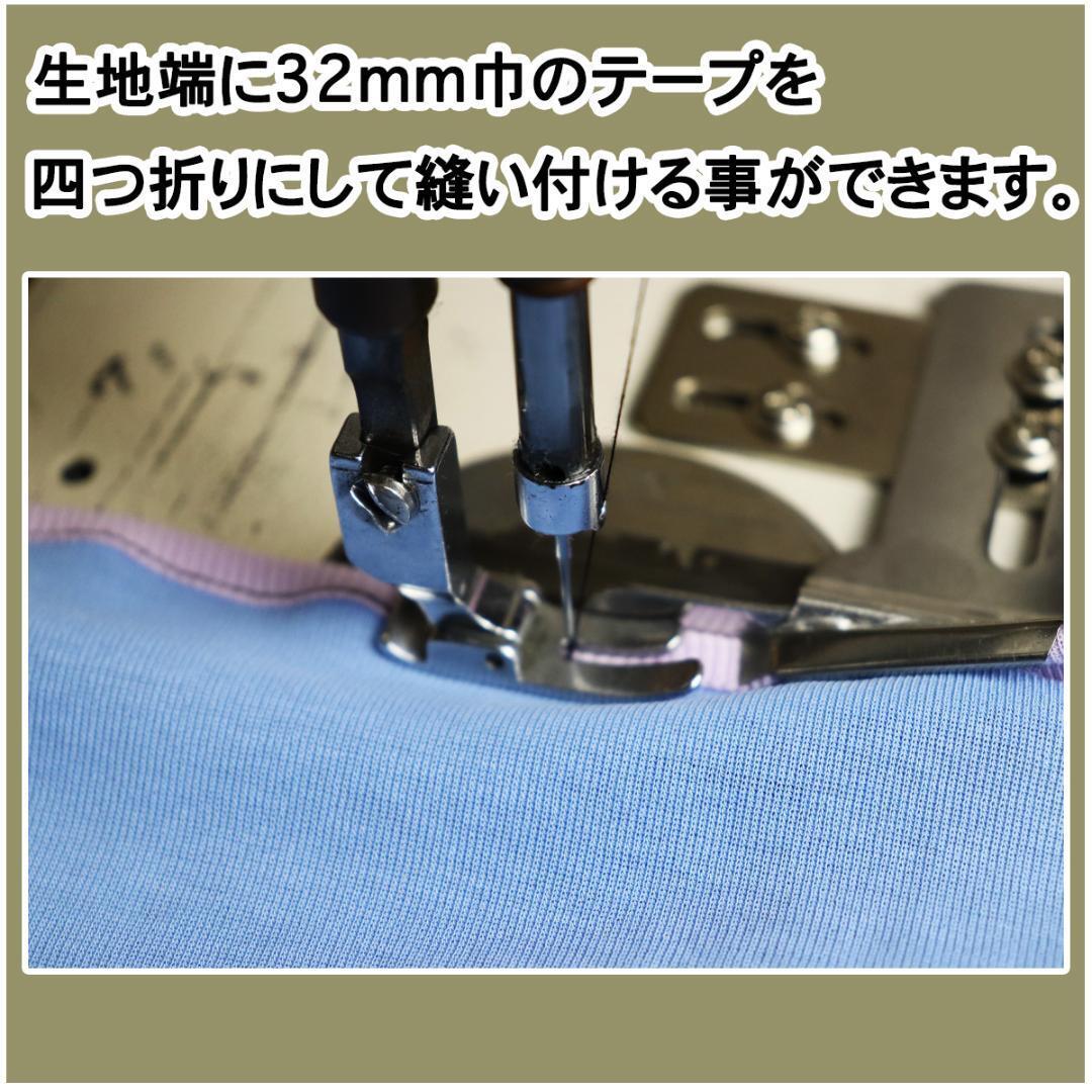 簡単に四つ折りのテープを 縫い付ける事ができます。
