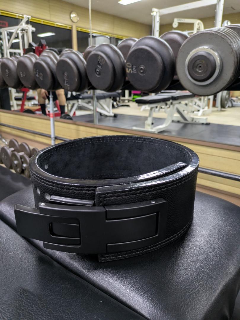レバーアクションによりワンタッチで着脱締め付け可能なトレーニングベルトになります。