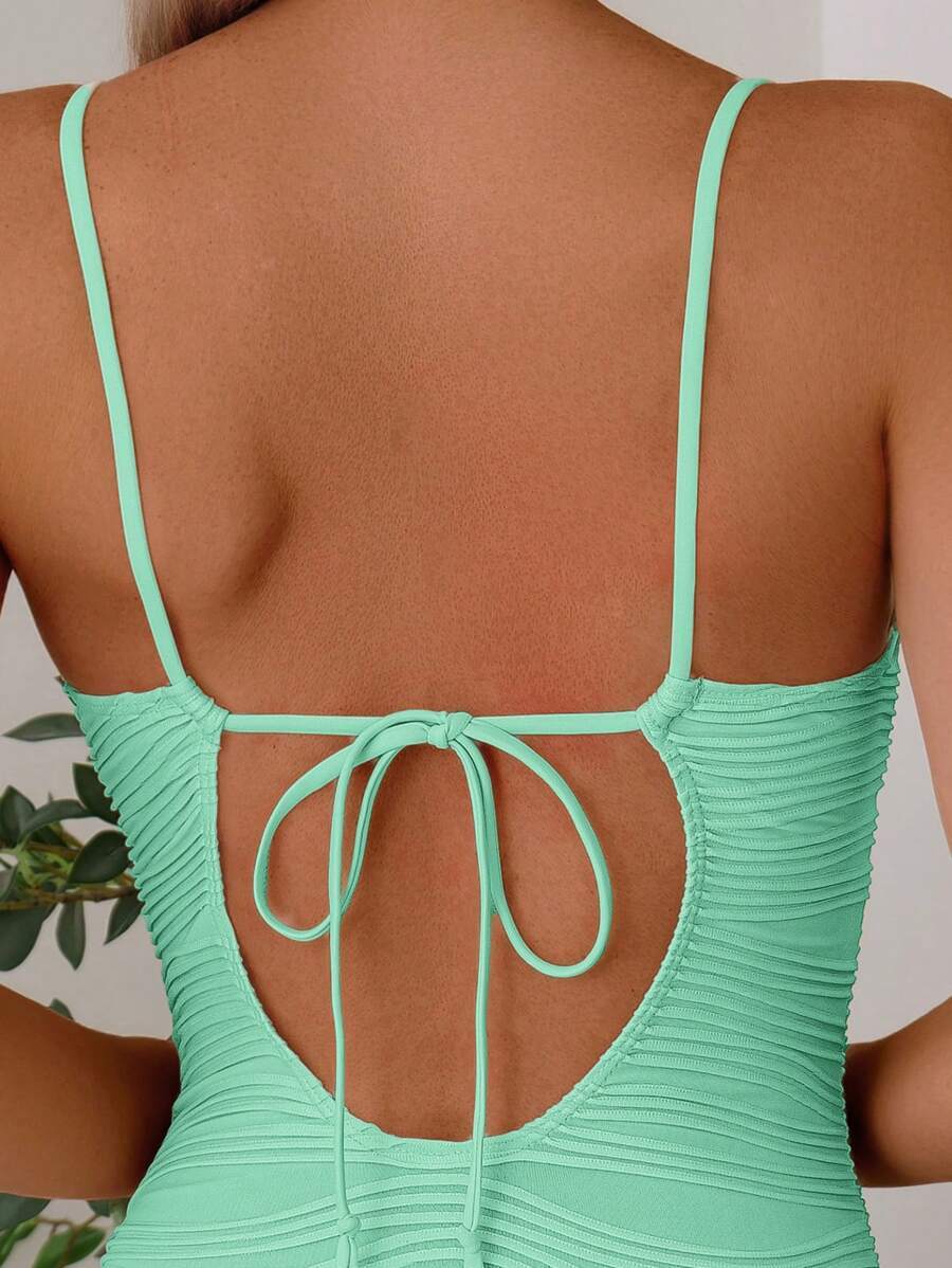 レディース 水着 ワンピース 女性 夏用 ビーチ ワンピース水着、無地 テクスチャー 生地、バストパッド付き、前 、クリスクロスバ
