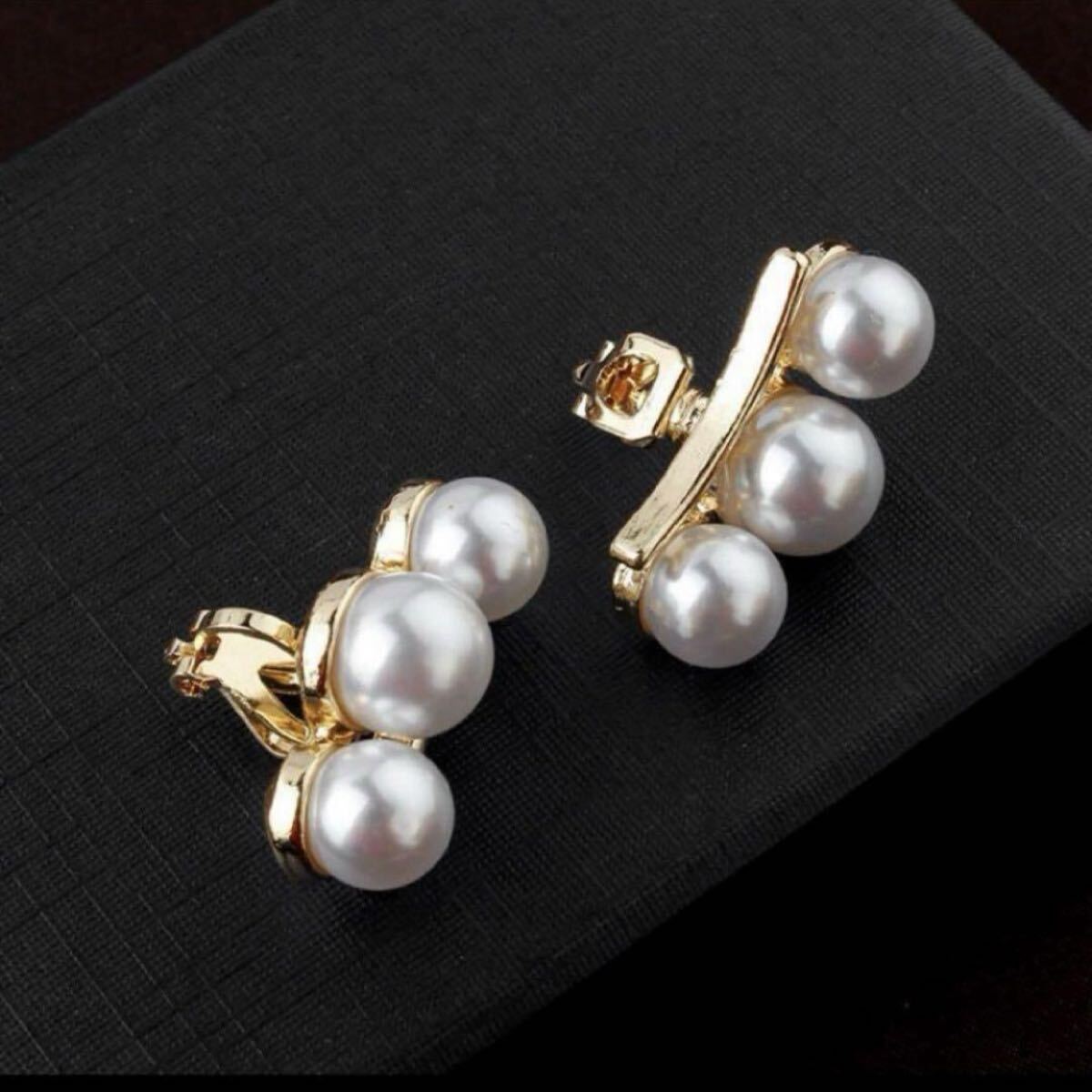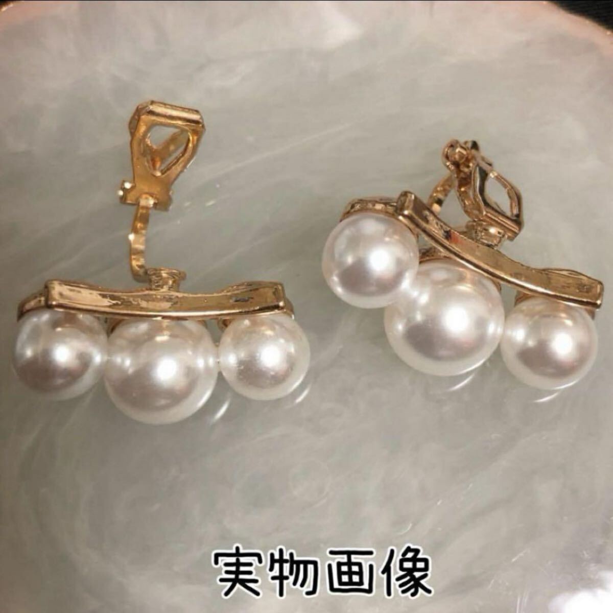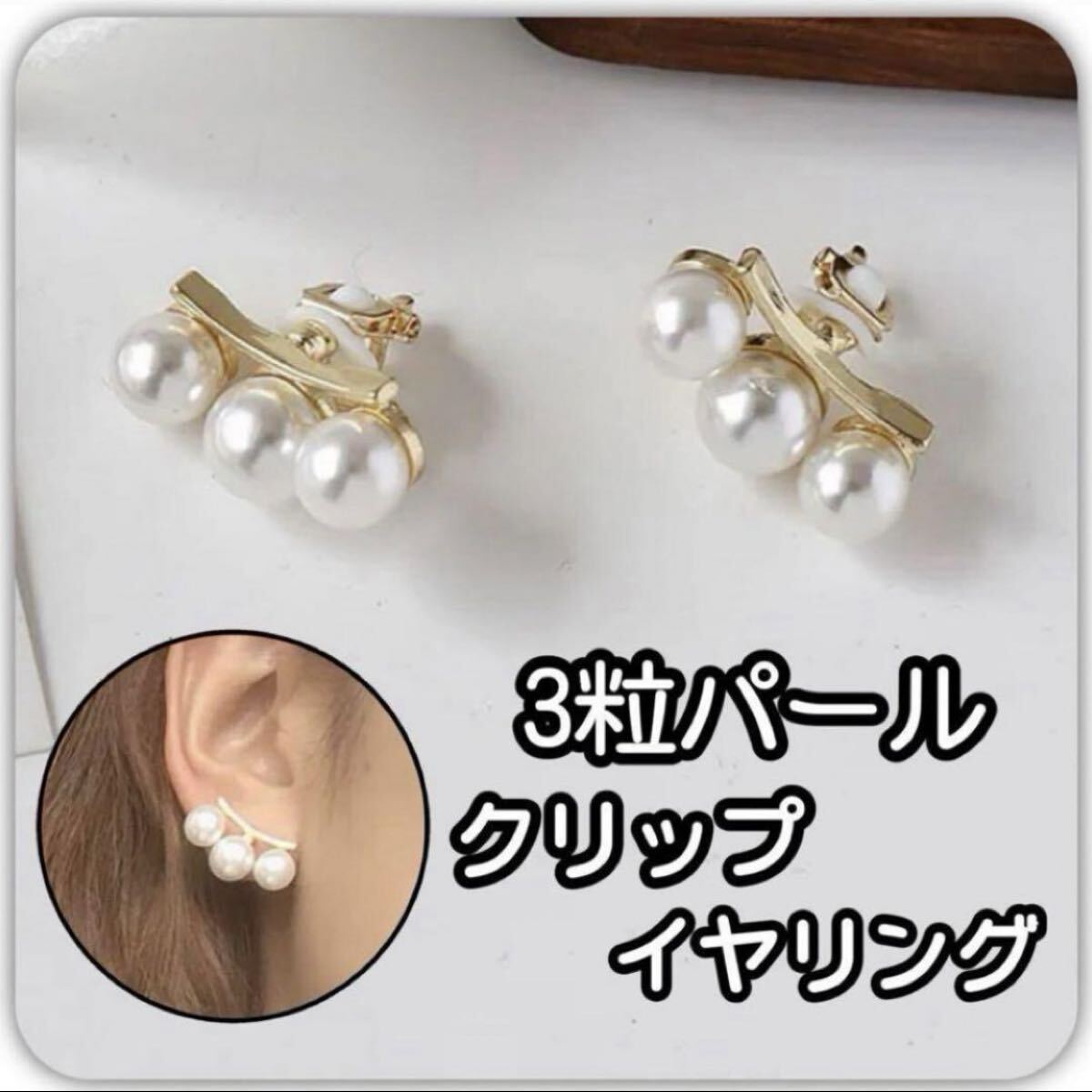 3粒 3連 パール クリップ イヤリング ゴールド 日常使い カジュアル フォーマル ママ シンプル