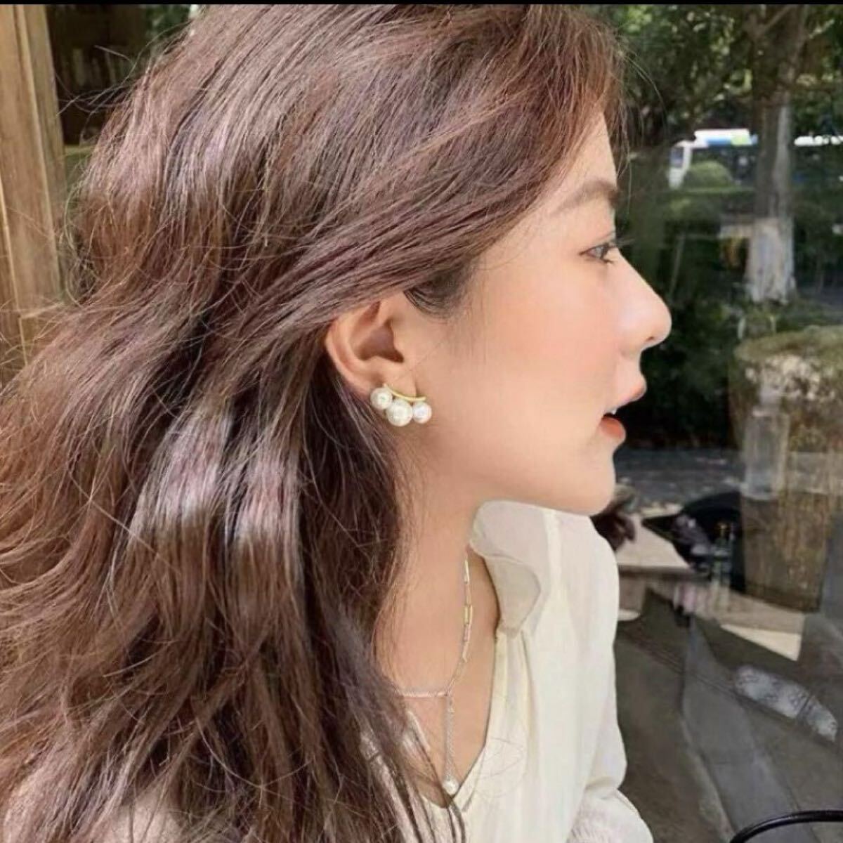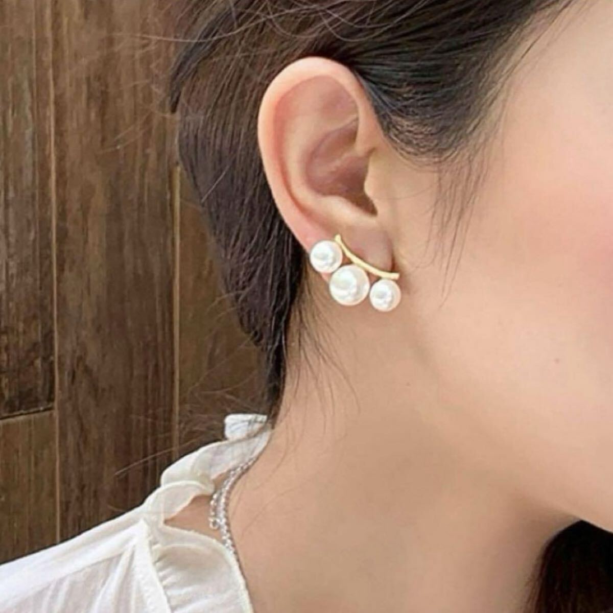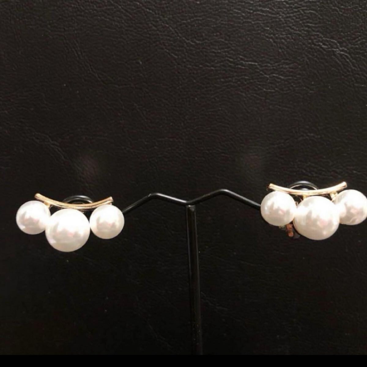 3粒のパールが連なるエレガントなクリップイヤリングです。