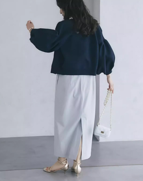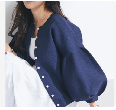 レディースバルーン袖カーディガン紺色