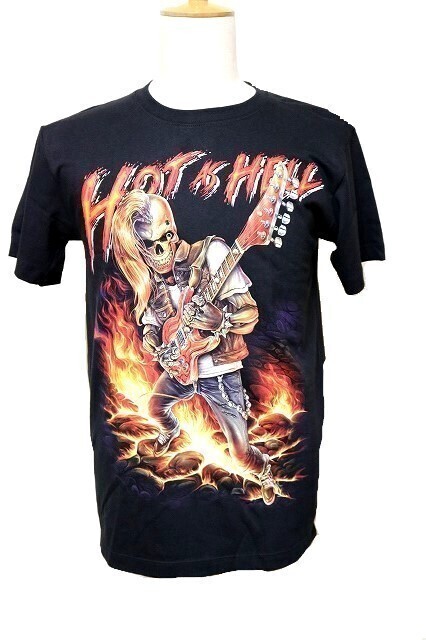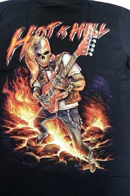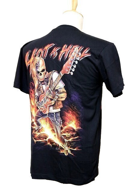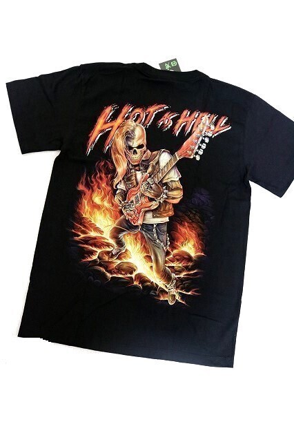 【新品】HOT as HELL 3D Tシャツ 半袖【M】黒◆SKULL 骸骨 ロック バンド ヘビメタ ヒップホップ DJ ポップス ホット アズ ヘル