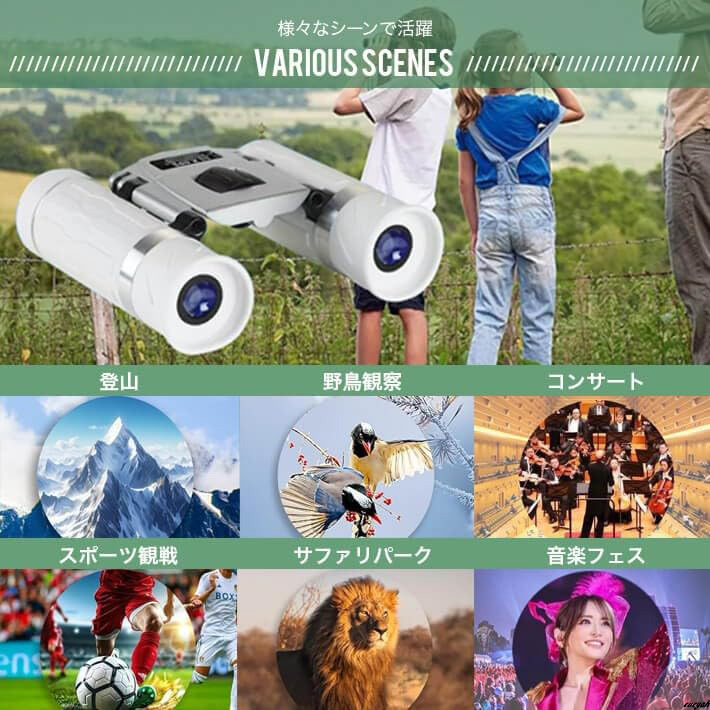 20倍超高倍率双眼鏡は、コンサートやスポーツ観戦、登山、旅行など、あらゆるシーンで臨場感あふれる観察体験を提供します。