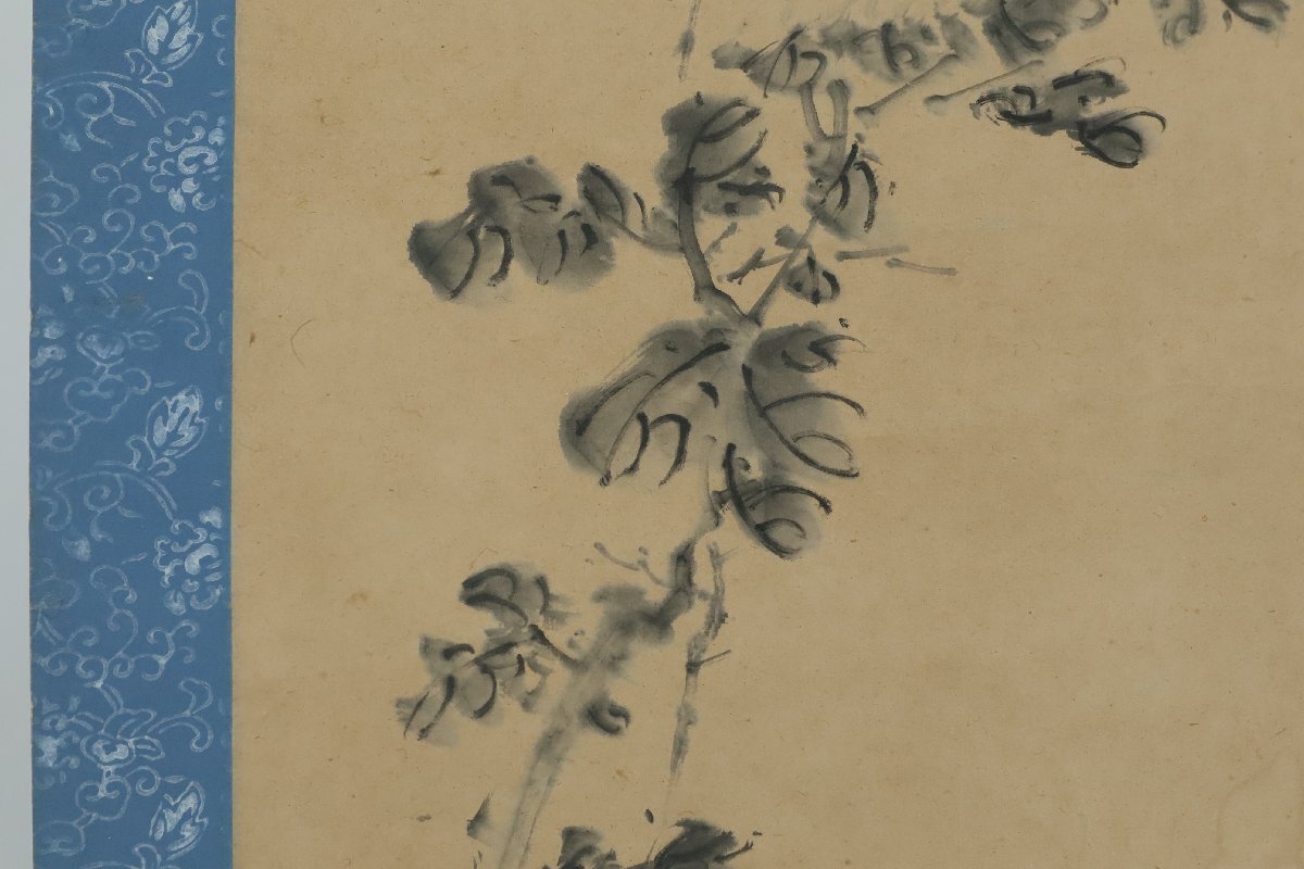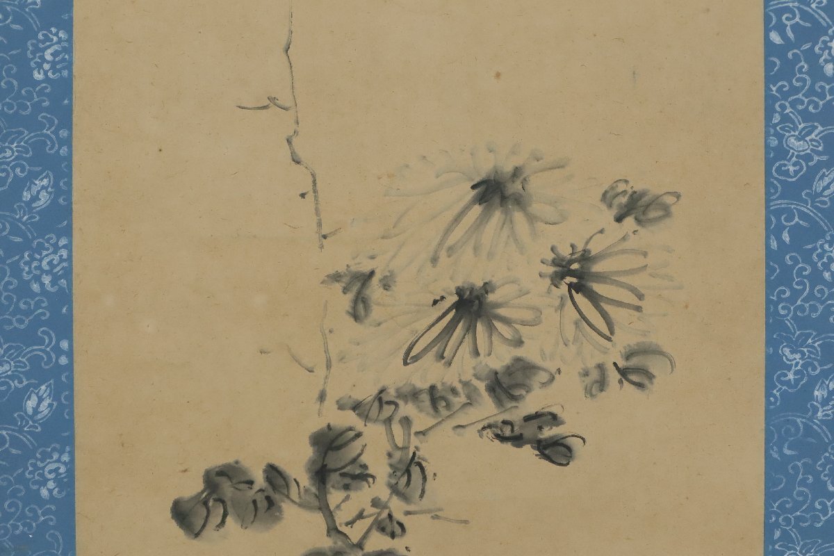 |   ・乙及 菊に漢文 水墨画 掛け軸 /掛軸 風景画 茶掛け |