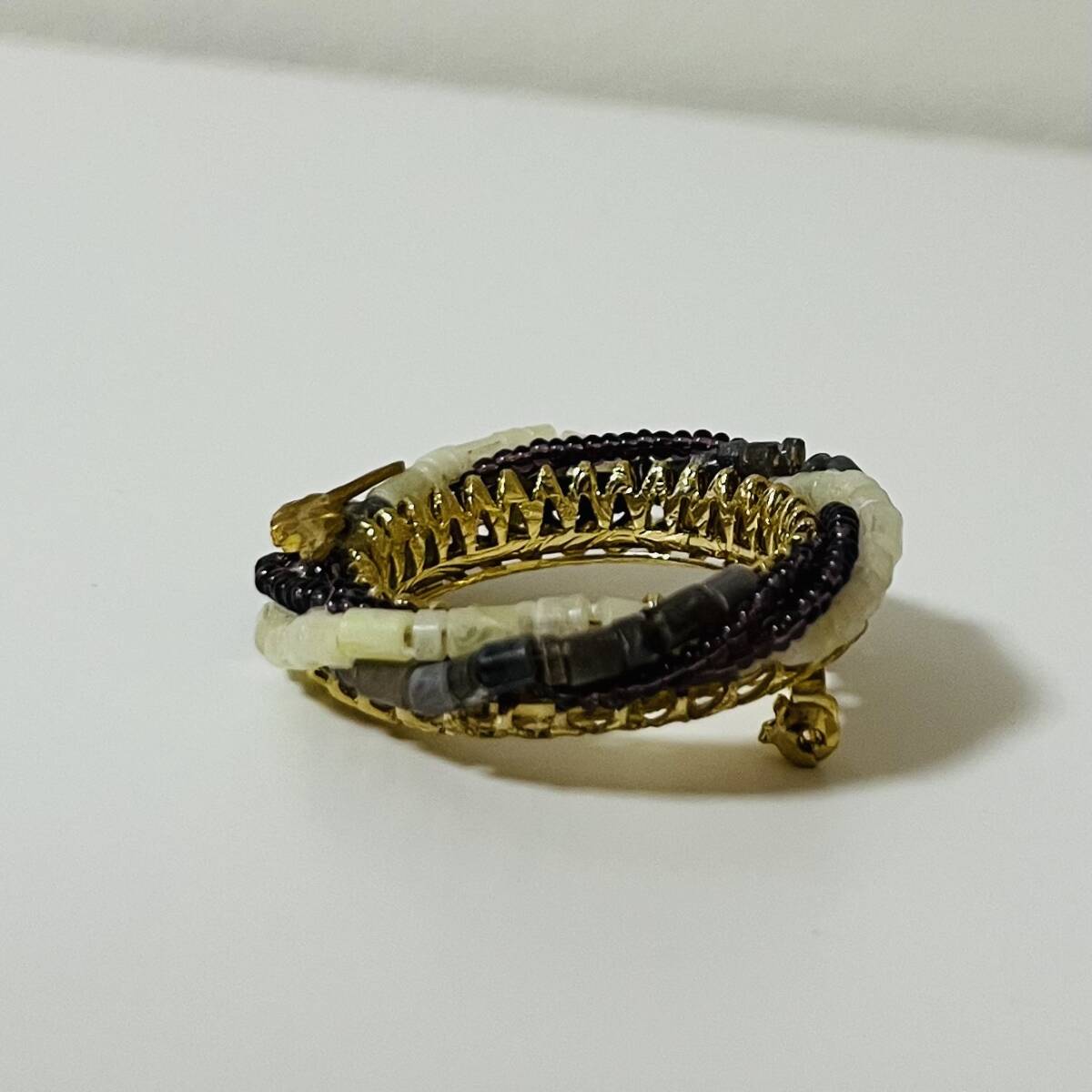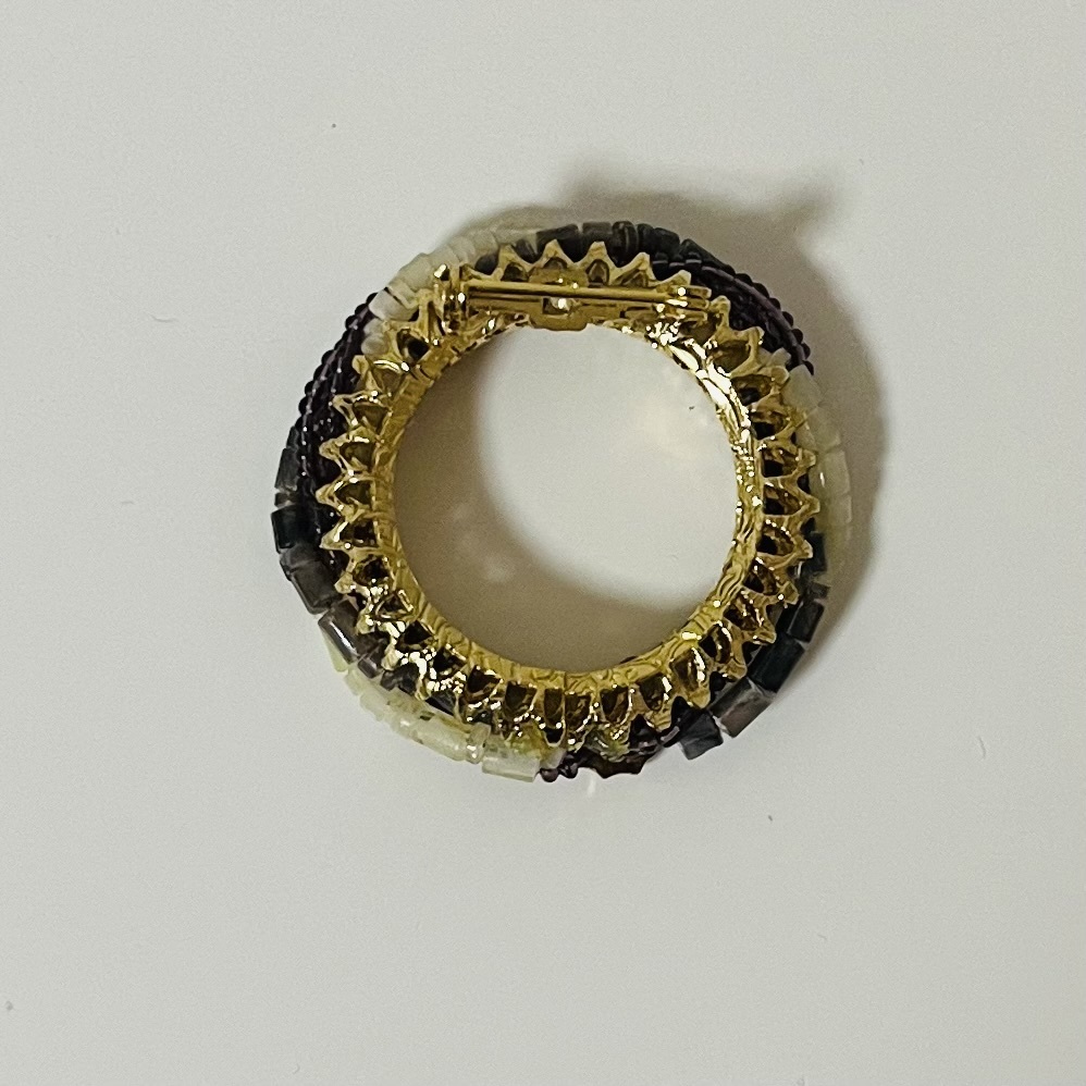 314 アンティーク ビンテージ コスチュームアクセサリー ブローチ 未使用保管品!ゴールドカラー ビーズ ガラス 紫 丸 海外製