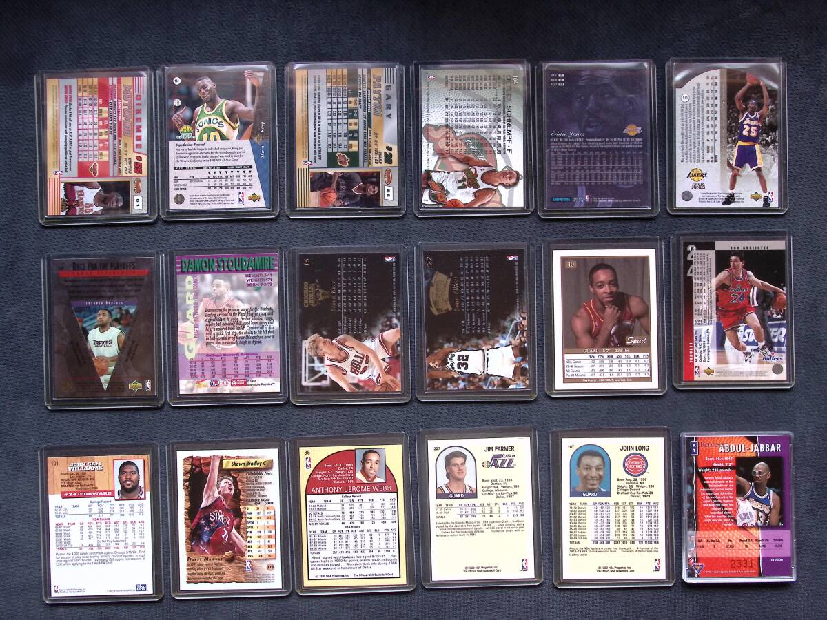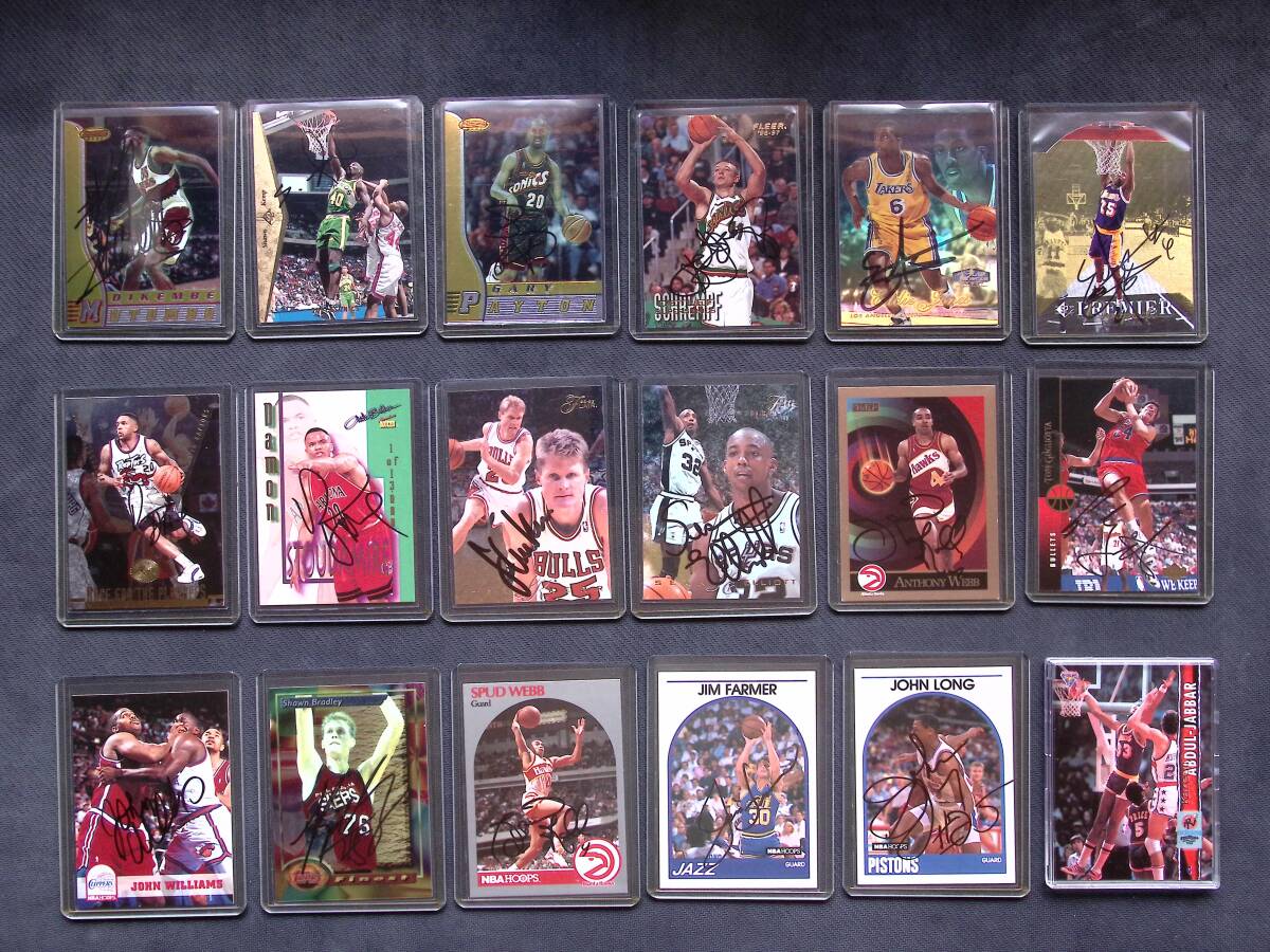| NBA トレーディングカード サイン 17枚 90年代、来日時に全て直接本人から頂いたものです。 証明する写真等はございませんが、ご理解ご了承いただける方のみ入札お願いいたします。 トレーディングカードは特に大きな傷等は見当たりません。 カードの知識はありませんのでよろしくお願いいたします。 以下がカードリストです。 ※Kareem Abdul Jabbarのカードは滞在先のホテルで本人より頂いたものですが、サインは入っていません。 ◇ Dikembe Mutombo / Atlanta Hawks ◇ Shawn Kemp / Seattle Supersonics ◇ Gary Payton / Seattle Supersonics ◇ Detlef Schrempf / Seattle SuperSonics ◇ Eddie Jones / Los Angeles Lakers ◇ Eddie Jones / Los Angeles Lakers ◇ Damon Stoudamire / Toronto Raptors ◇ Damon Stoudamire / Arizona Wildcats ◇ Steve Kerr / Chicago Bulls ◇ Sean Elliott / San Antonio Spurs ◇ Anthony Webb / Atlanta Hawks ◇ Tom Gugliotta / Washington Bullets ◇ John Williams / Los Angeles Clippers ◇ Shawn Bradley / Philadelphia 76ers ◇ Spud Webb / Atlanta Hawks ◇ Jim Farmer / Utah Jazz ◇ John Long / Detroit Pistons ◆ 1995 Futera Kareem Abdul Jabbar Promo Card Lakers (こちらのカードはサインはありません) ※写真が現物になります。ご確認の上、入札お願いいたします。 | |||