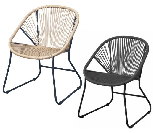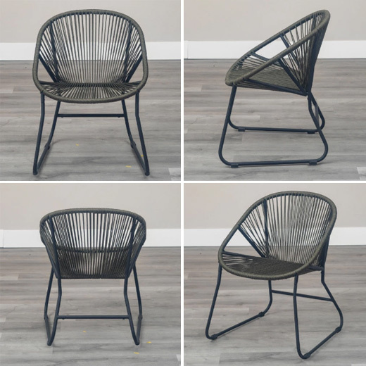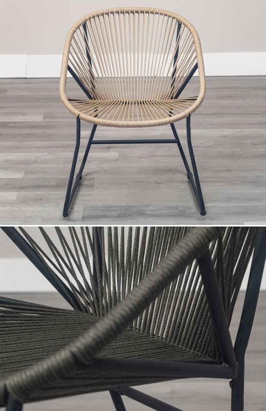 マットなブラックスチールのフレームとあたたかみのあるロープの組み合わせ。