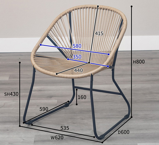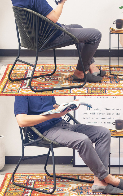 ロープチェアならではのリラックスできる座り心地で通気性もあるため快適です。