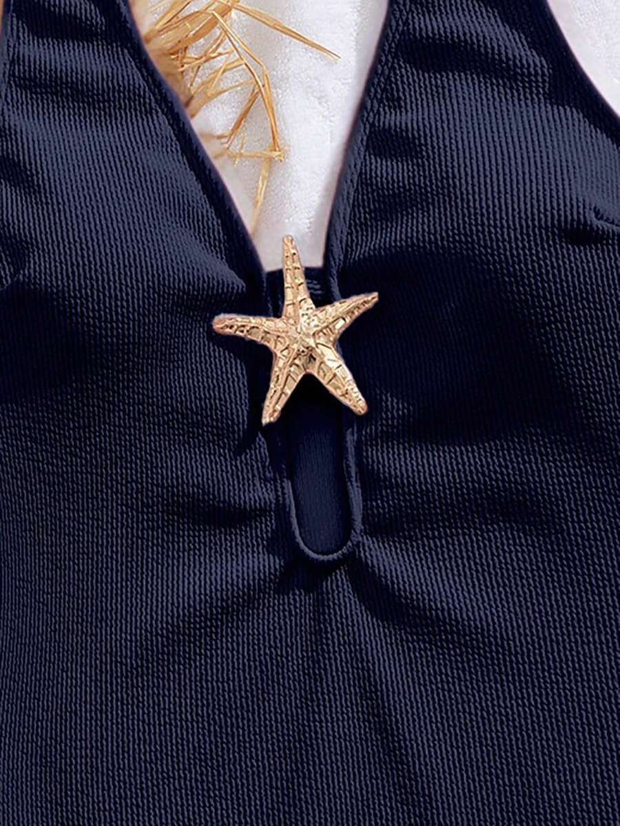 レディース 水着 ワンピース 女性用新作ワンピース水着 丸型カットアウトクロスデザイン、金属製ヒトデデコレーション、ワンピース腹部