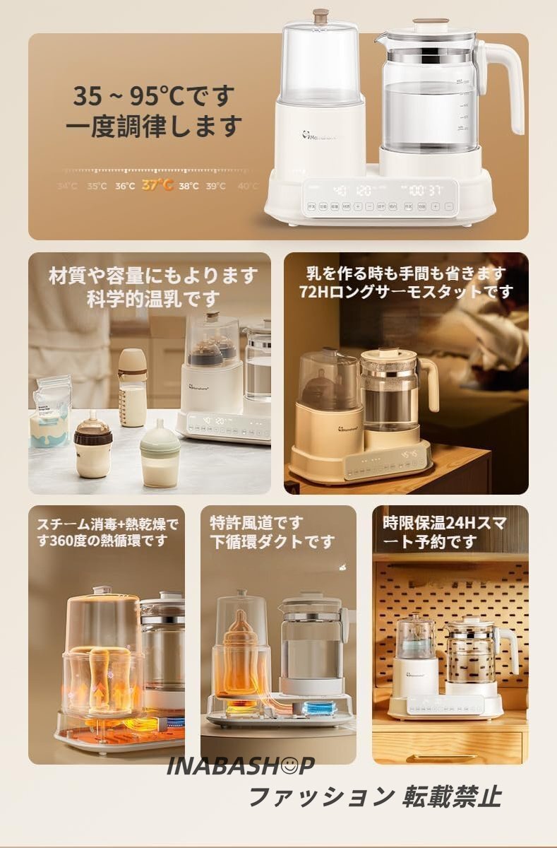 調乳/消毒/乾燥一体です 10の機能性ミルクポット 様々なホットフード、お茶、飲み物の多様なニーズを一発で楽しむことができます。煩雑な操作が要らなくて、一机多能、多モードは一家の異なる飲用水の需要を満たします