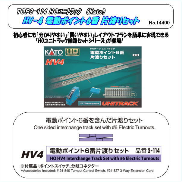 TOP3-114 (HO) HV-4 ユニトラック 電動ポイント6番 片渡りセット (Kato)