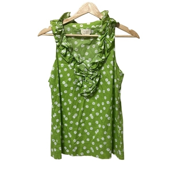 ケイトスペード Kate spade ノースリーブカットソー サイズ2 S - ライトグリーン×白 レディース フリル トップス