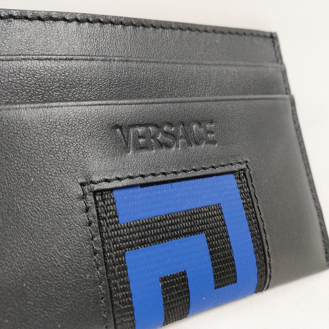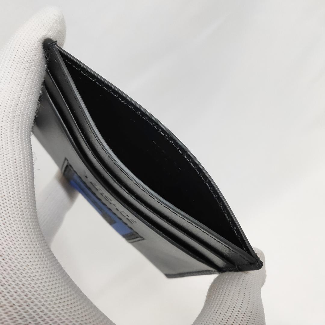 ○★新品 未使用 VERSACE グリース レザーカードケース ブラック×ブルー カードウォレット(ヴェルサーチェ)○●