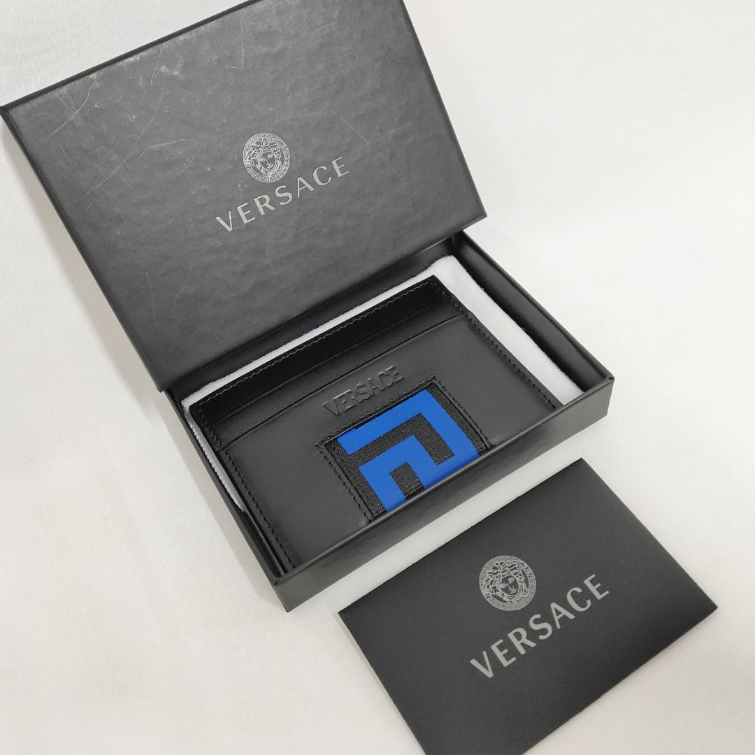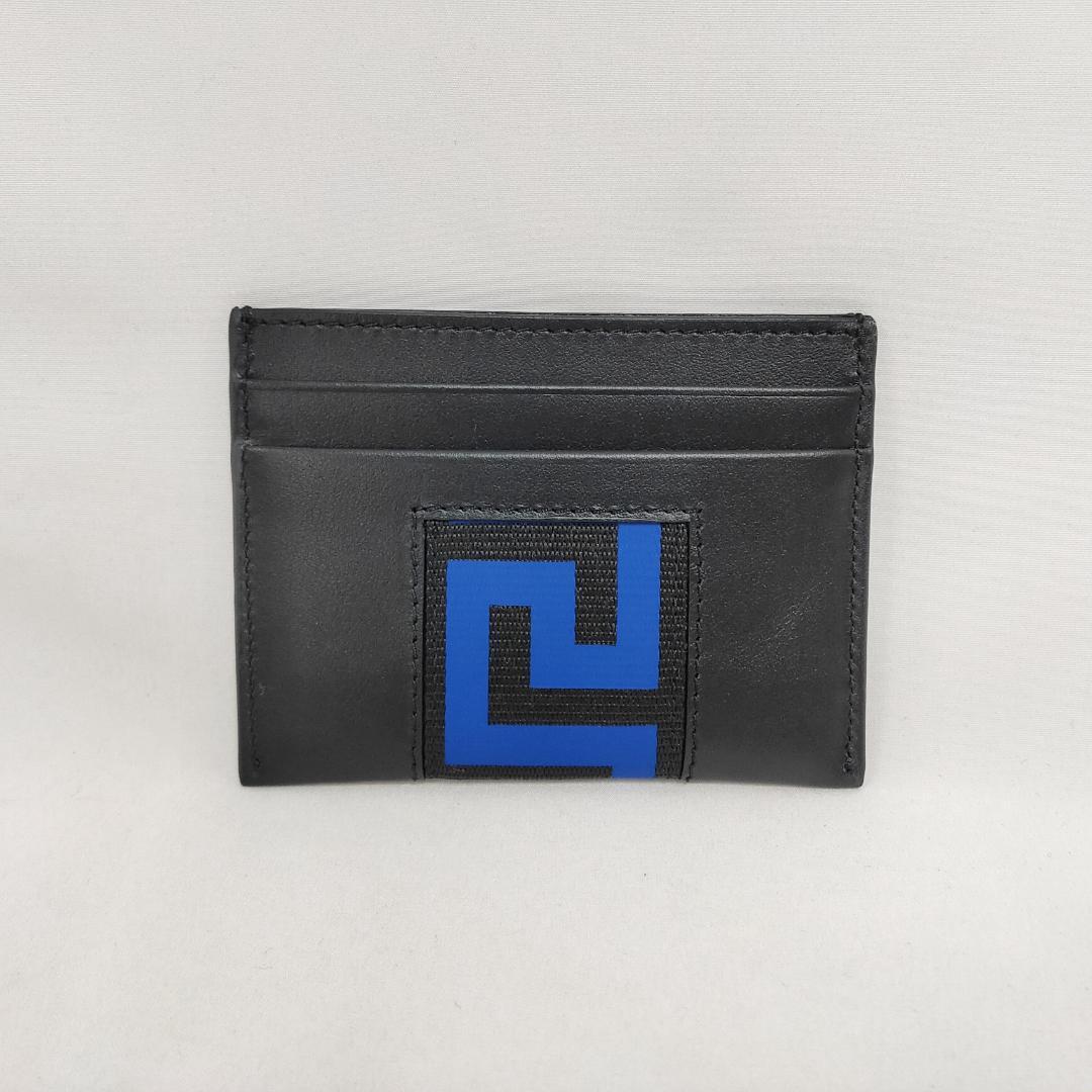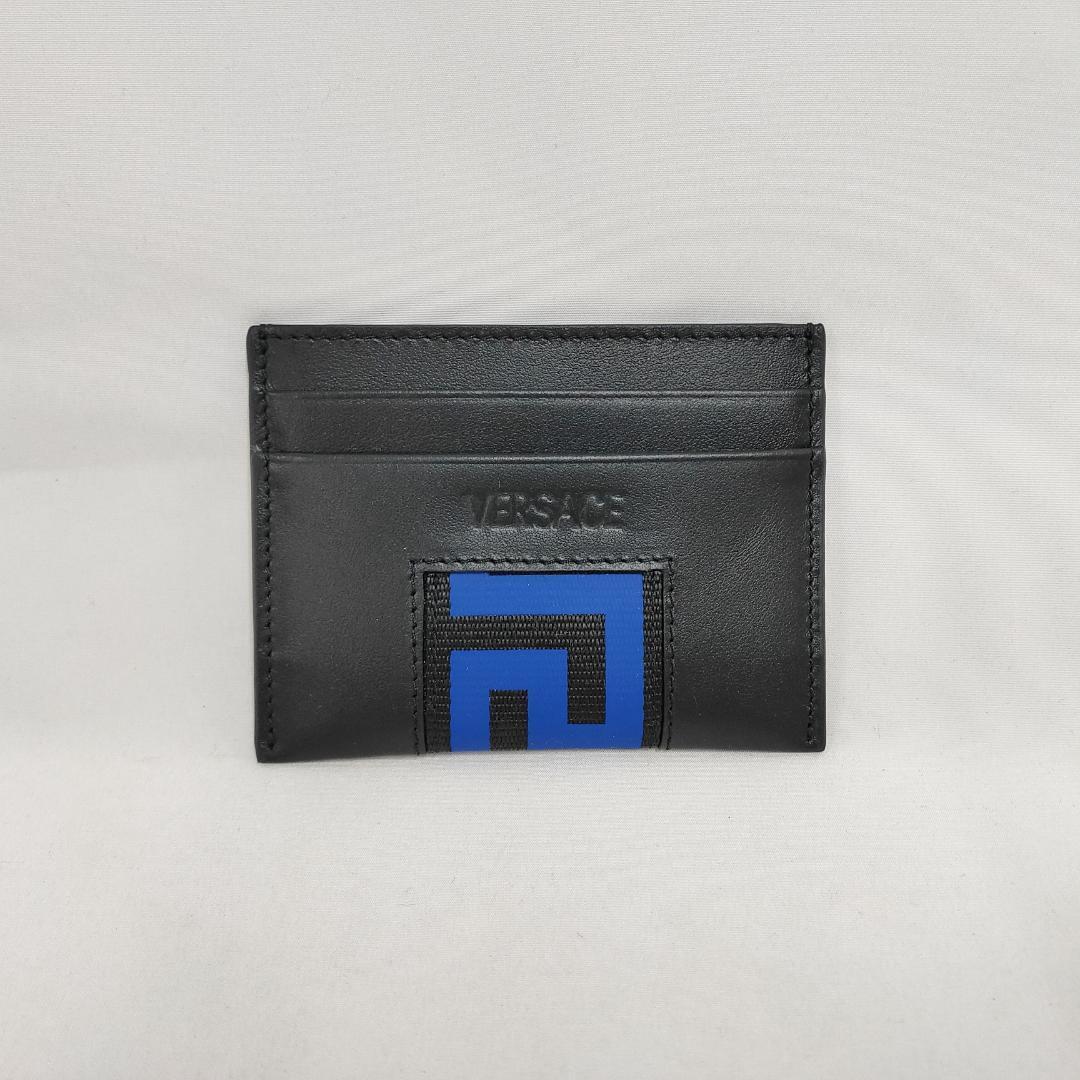 ●○新品 未使用 VERSACE グリース レザーカードケース ブラック×ブルー○●