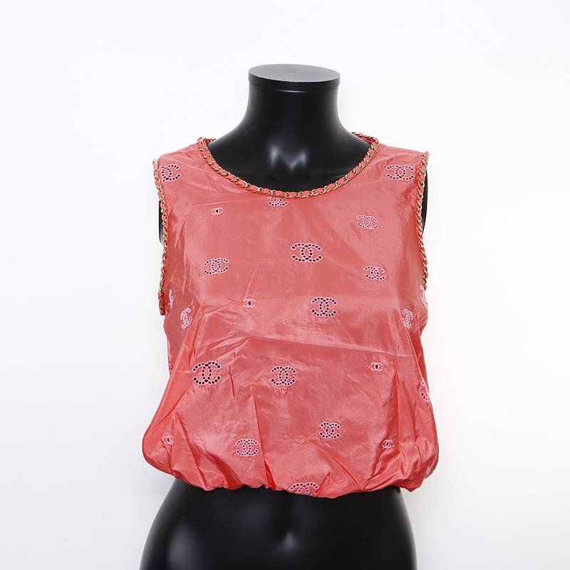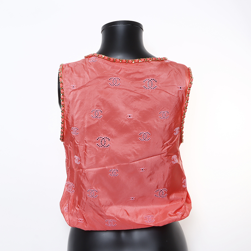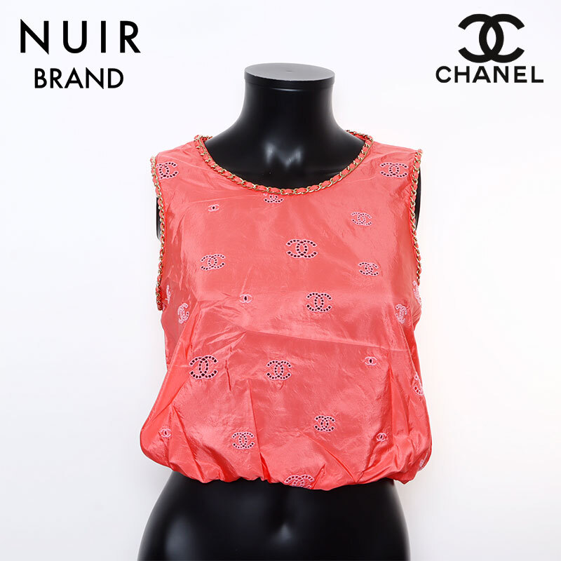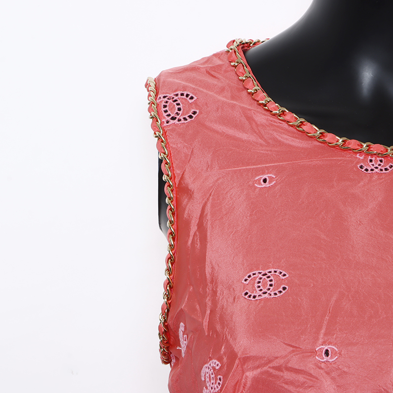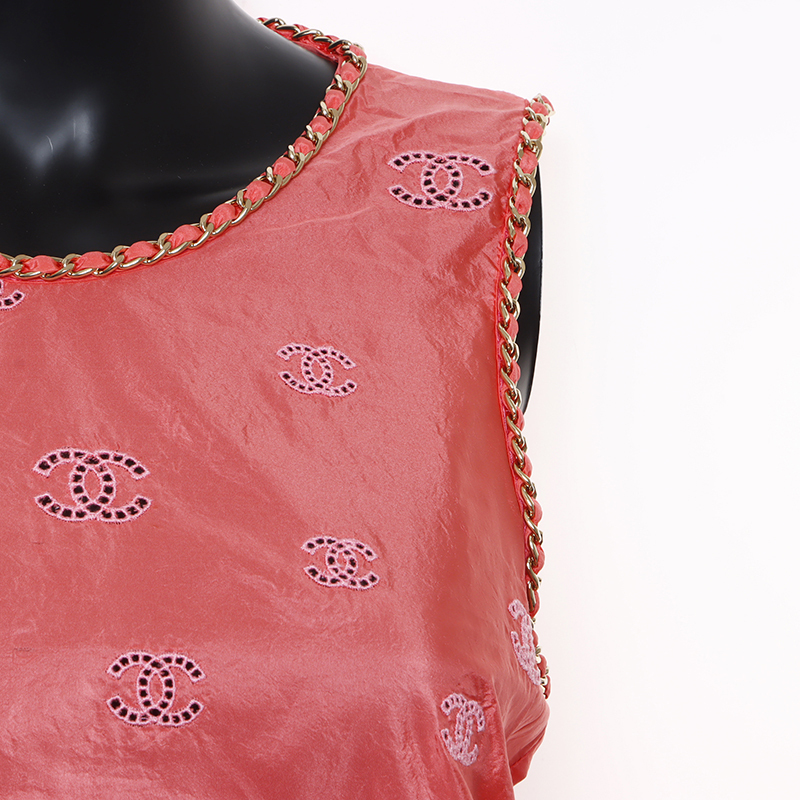 極美品 シャネル CHANEL Size:34 P60802 ココマーク シルク チェーン ノースリーブ タンクトップ ピンク WS9355
