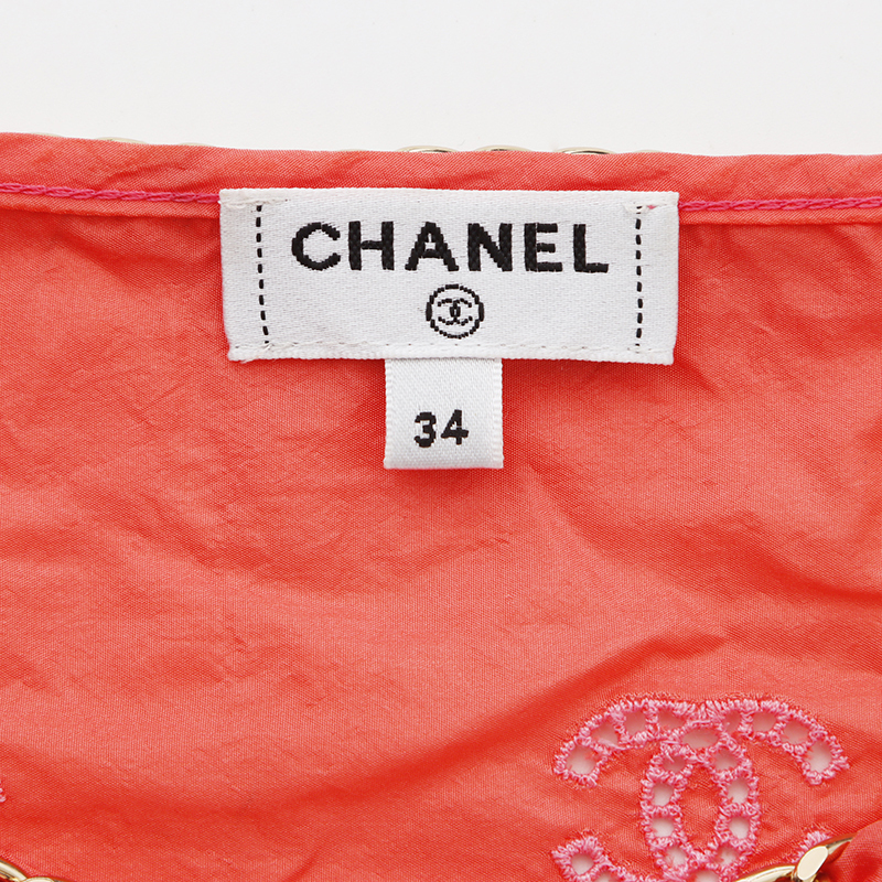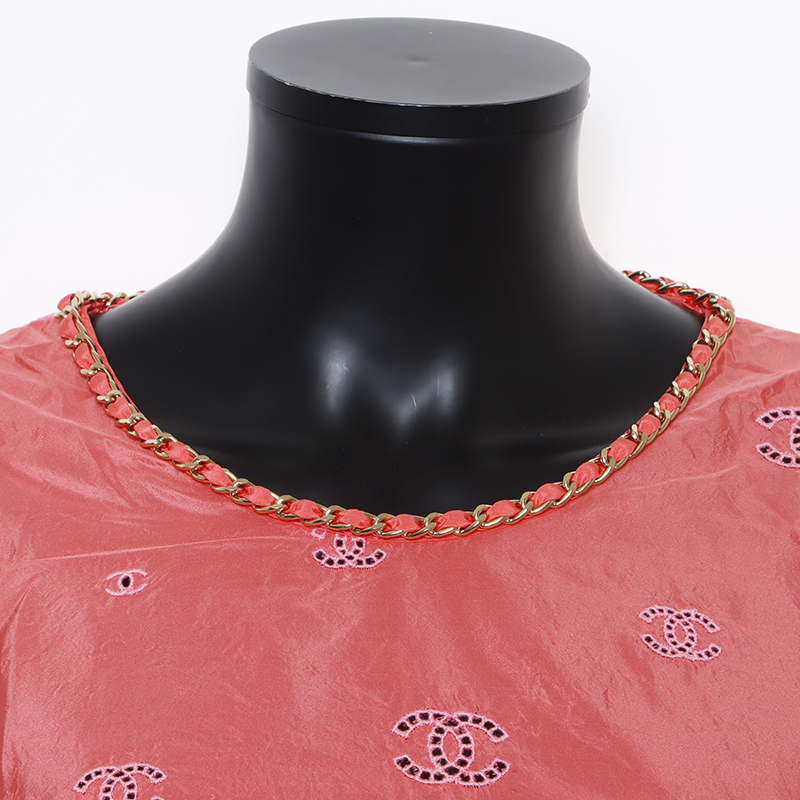 極美品 CHANEL Size:34 P60802 ココマーク シルク チェーン ノースリーブ タンクトップ ピンク