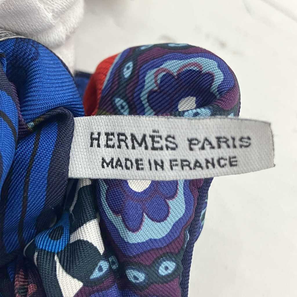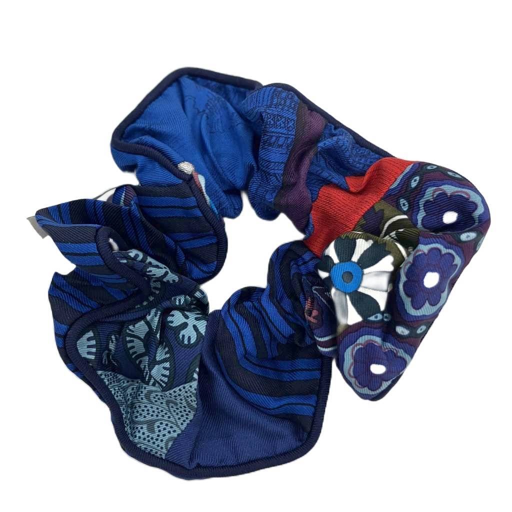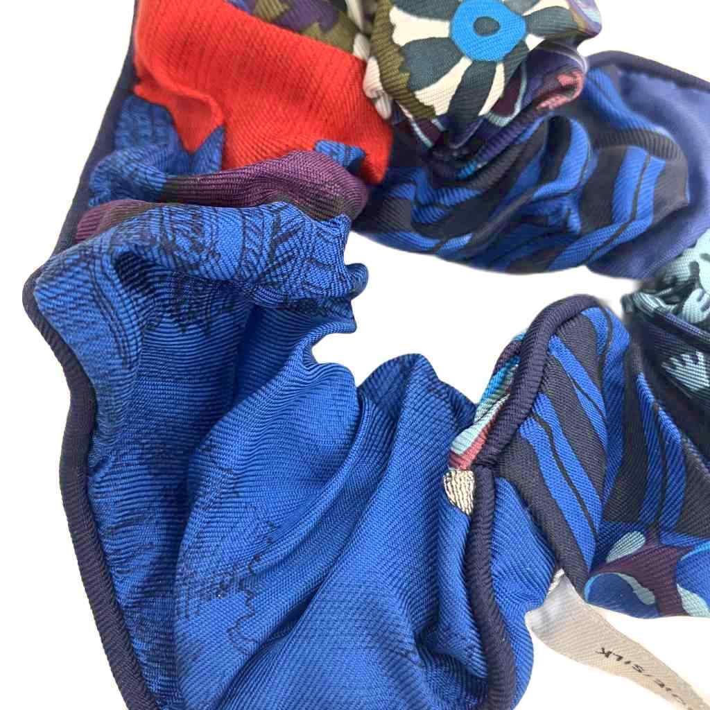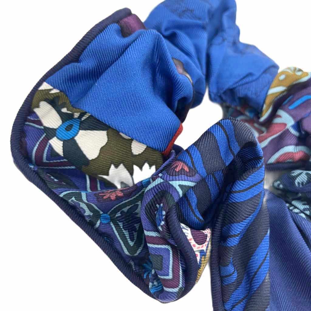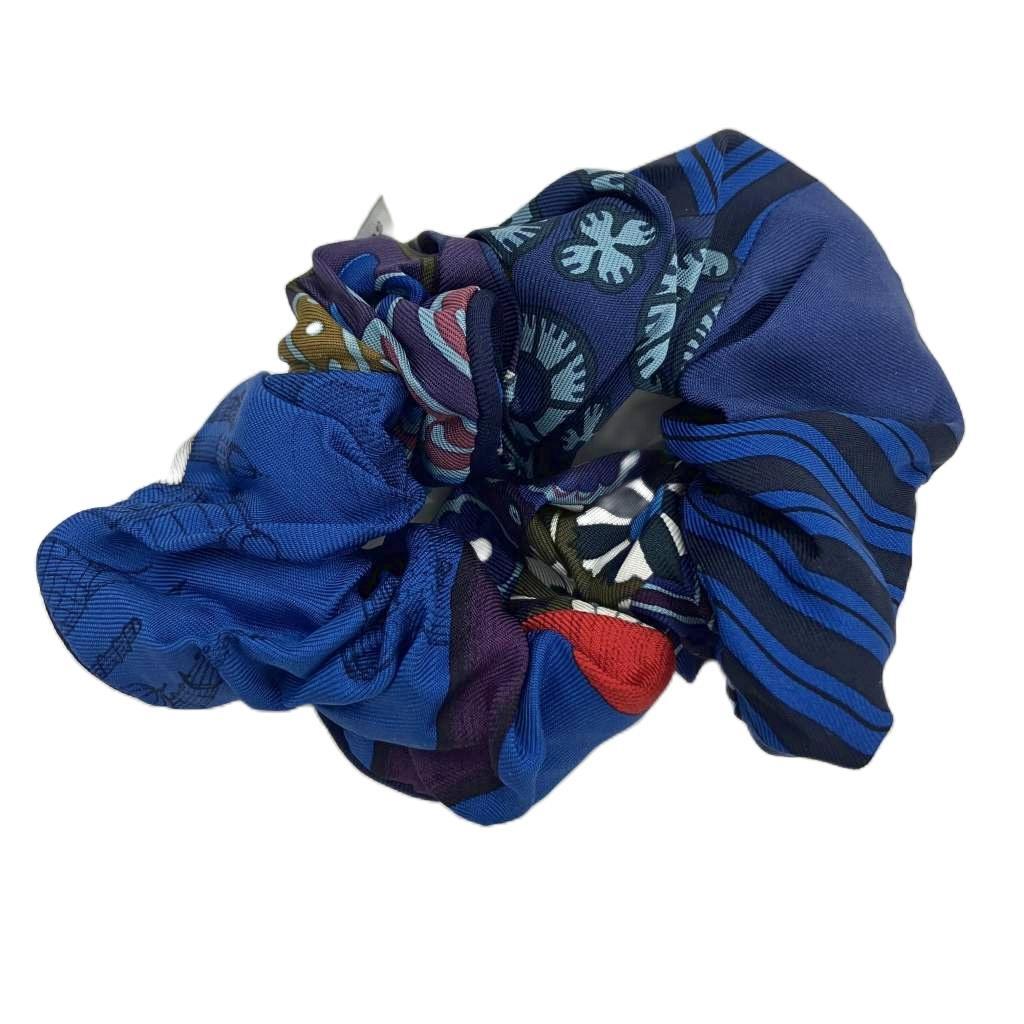 エルメス HERMES 美品 CHOCHO CLAUDIA シュシュ クラウディア シルク100% ヘアアクセサリー 青 ブルー レディース