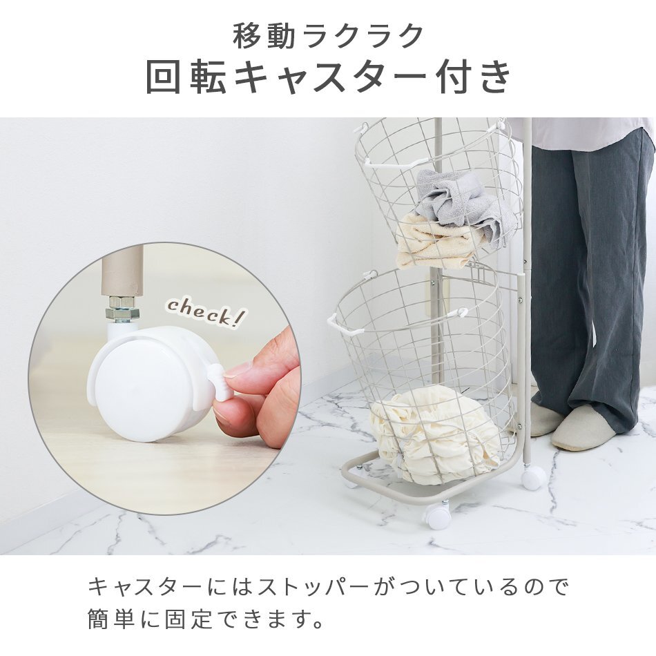 縦置き3段タイプ大容量「ランドリーバスケット」です。 2つのバスケットを縦に並べるので、 デッドスペースを活用でき物が多くなりがちなランドリー周りも無駄なくすっきり♪ バスケットは取り外し可能&持ち手付きで洗濯物の持ち運び・取り込みに便利です! また、キャスター付きでラックごとの移動もスムーズです。 通気性抜群のワイヤーフレーム採用! 嫌にニオイや湿気が溜まりにくく、カビ等も発生しにくいです。 ランドリー以外に食品ストッカー、雑貨入れ、おもちゃ収納としても大活躍です☆ 【商品仕様】 カラー:ホワイト 形:スクエア(四角形) サイズ(外寸):(約)幅37.5×高さ123×奥行37.5cm 重量(約):3.6kg 容量(約):16L×2・27L×1 耐荷重(約):15kg(ラウンド・スクエア) 素材:スチール、ナイロン (カゴ 洗濯かご 収納かご ストッカー 食品 雑貨 おもちゃ ランドリー 脱衣所 更衣室 リビング キッチン 子供部屋 北欧 人気 WEIMALL) ■ ラウンドタイプはこちら |