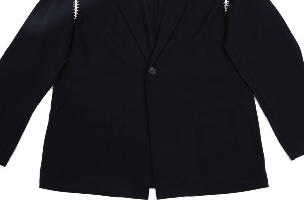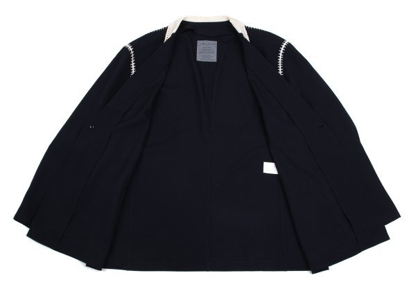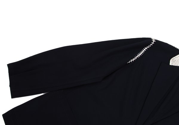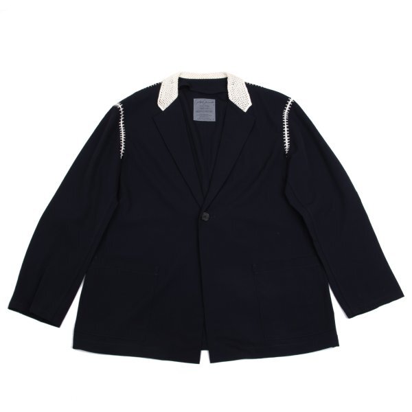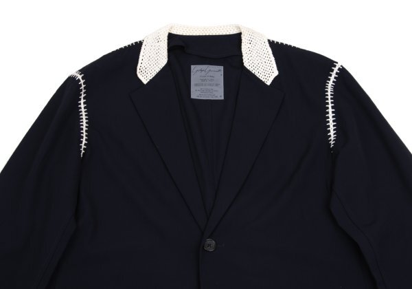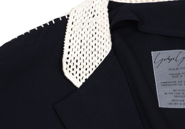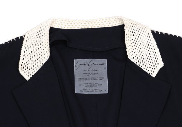 | ヨウジヤマモト プールオムYohji Yamamoto POUR HOMME かぎ編みレース切替ウールギャバジャケット 紺白M |