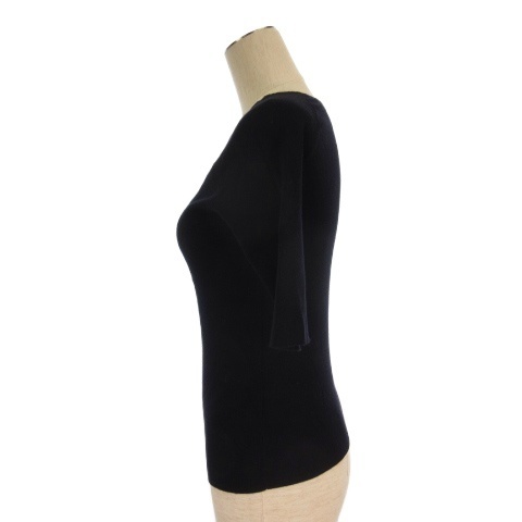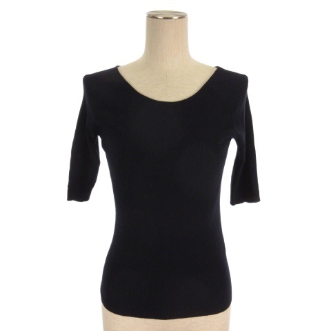 ユナイテッドアローズ UNITED ARROWS ニット セーター 五分袖 無地 プルオーバー レーヨン混 紺 ネイビー レディース