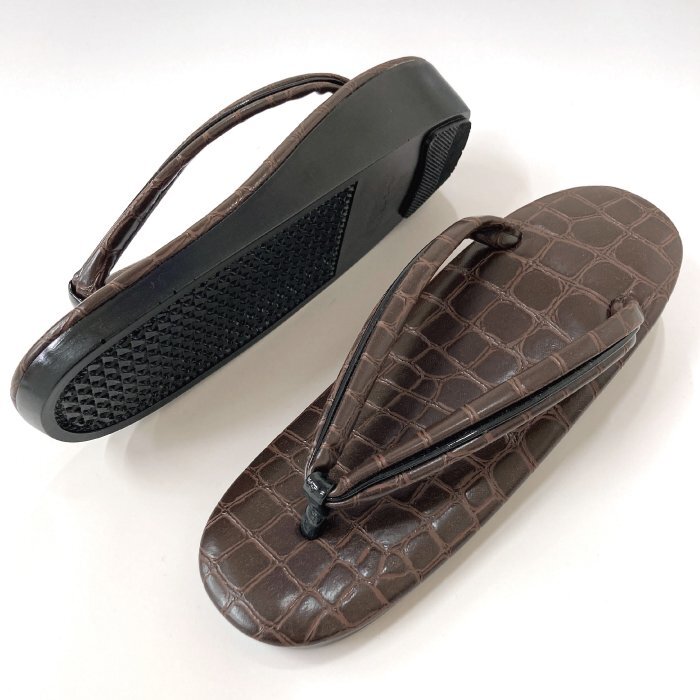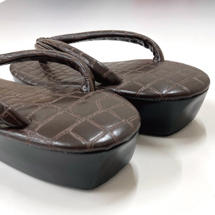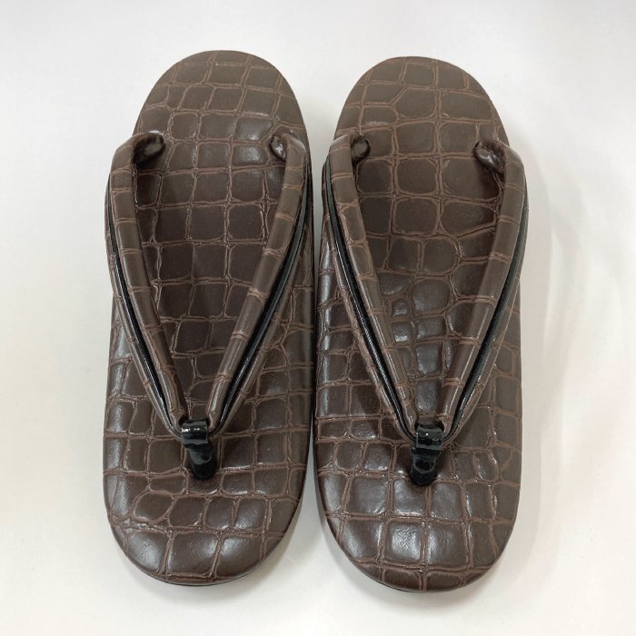 台表と鼻緒に型押しレザー生地を使用した高級感ある素敵な一品です。