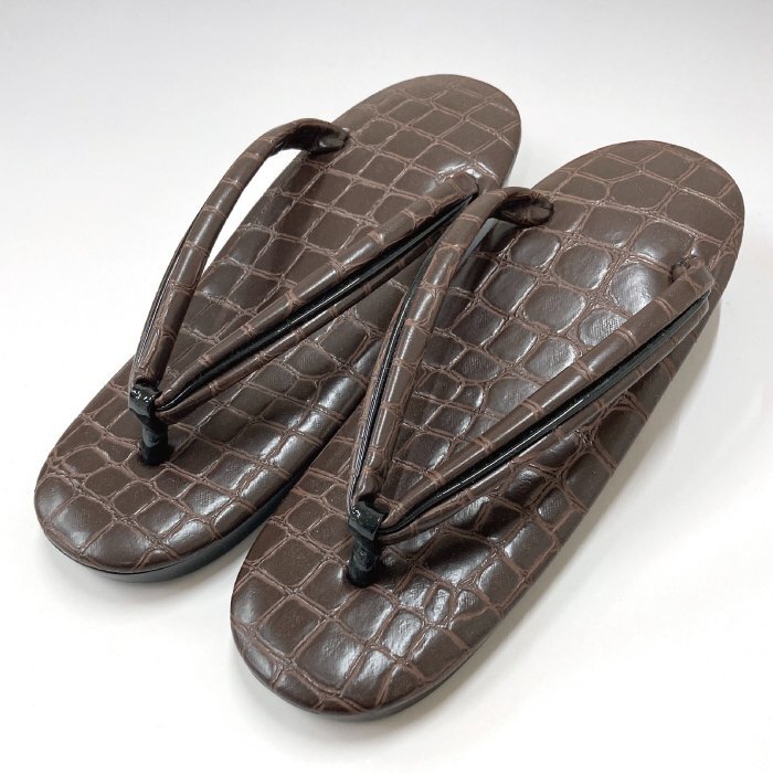 おしゃれ ウレタン草履 フリーサイズ 和装小物 履物 ぞうり 型押レザー レディース 着物 女性 ブラウン クロコ調