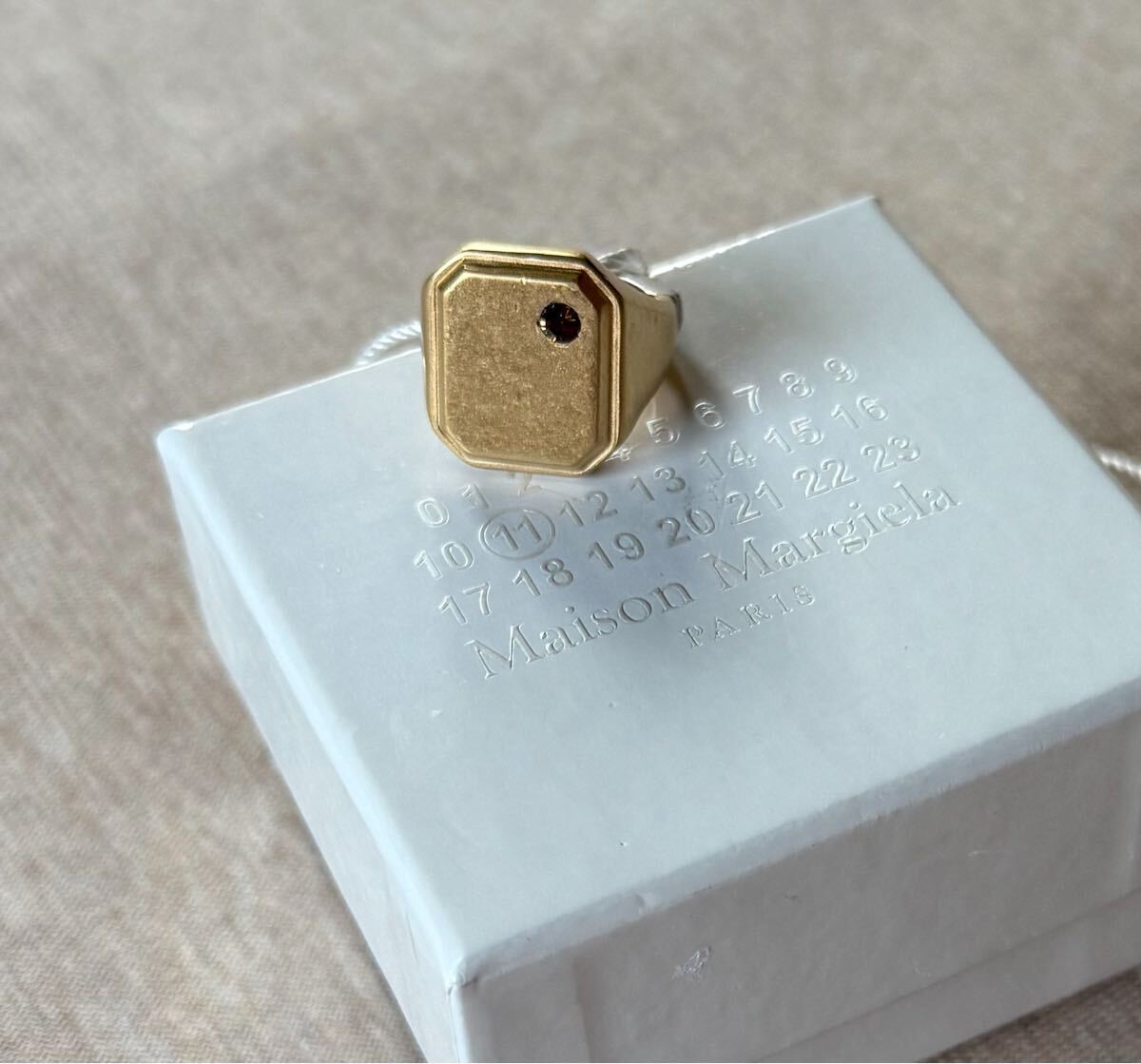Maison Margiela 22AW の スモーキークォーツ シュバリエ エングレーブ リング です。