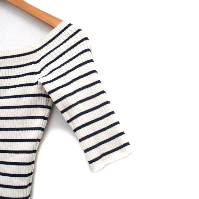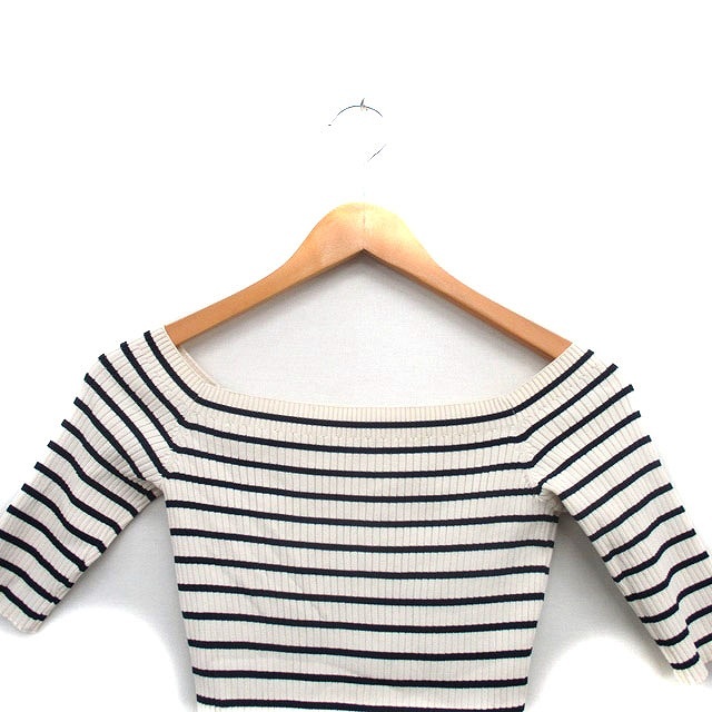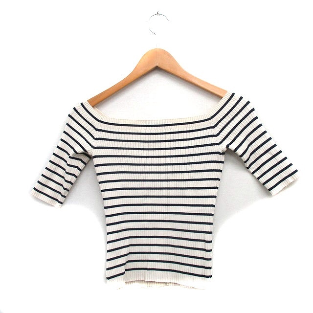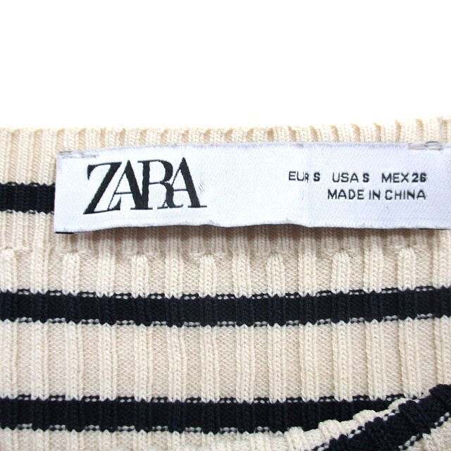ザラ ZARA リブ ニット セーター 五分袖 ボーダー S アイボリー 白 /KT31 レディース