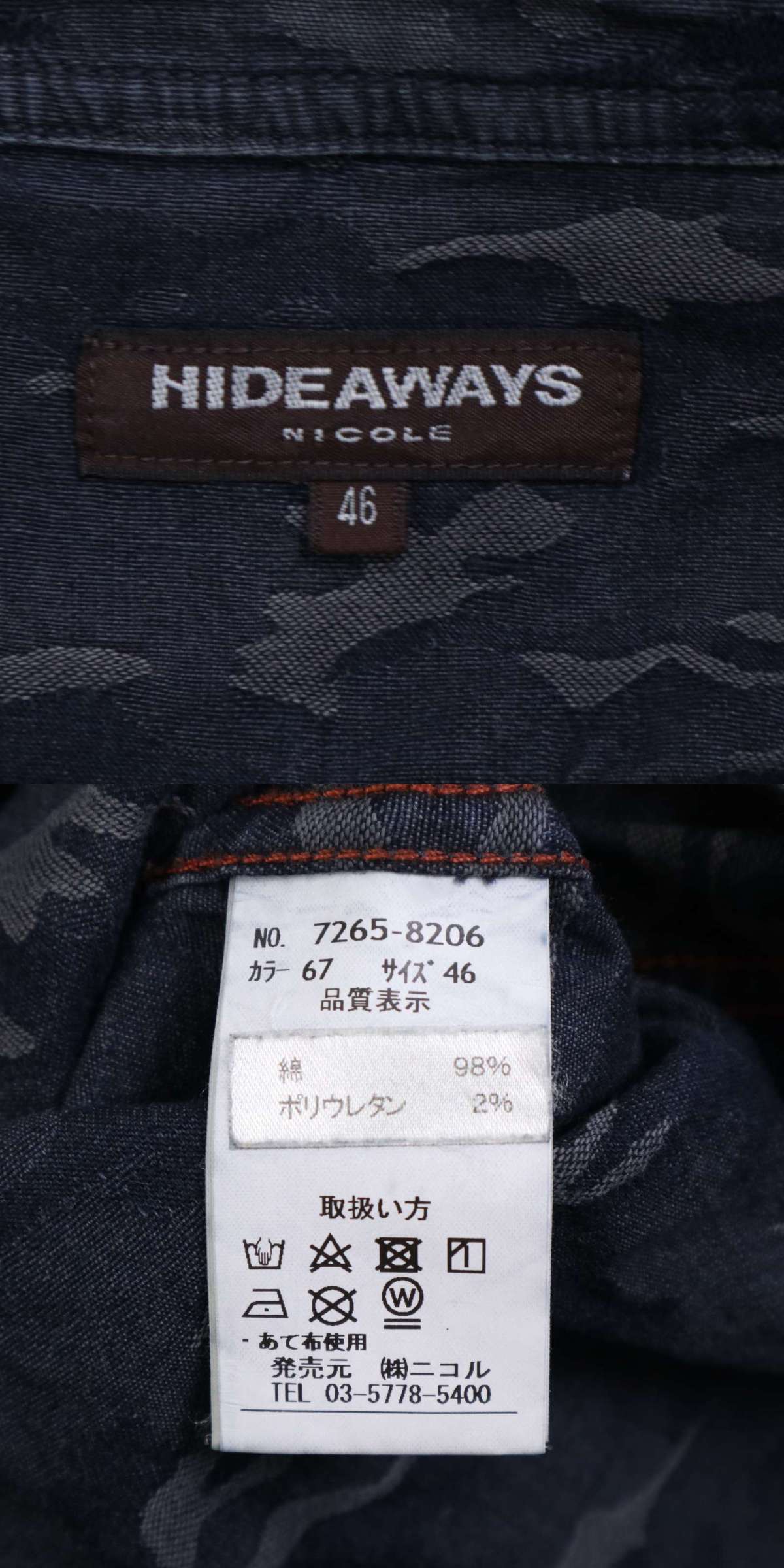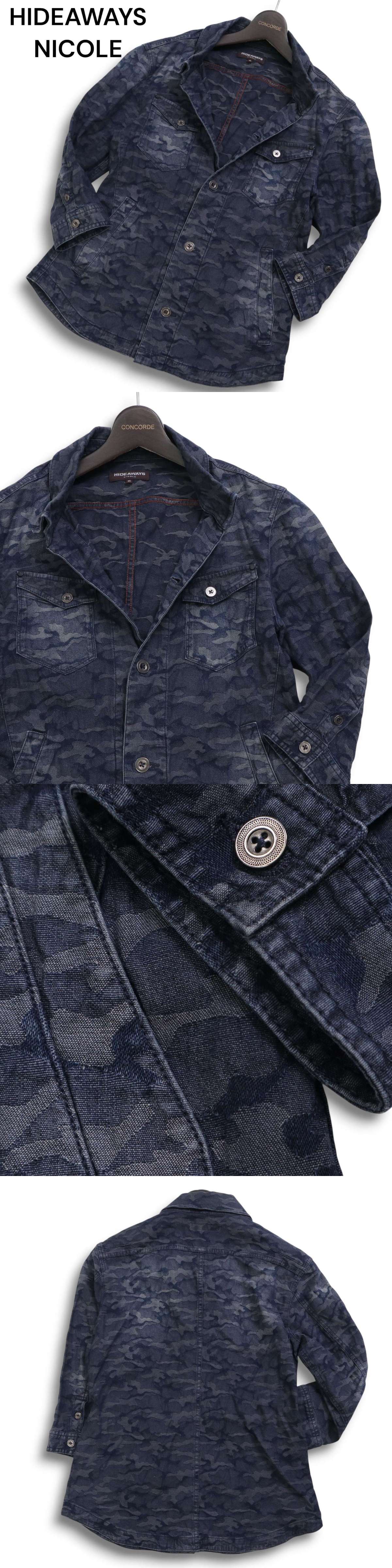 HIDEAWAYS NICOLE ハイダウェイ ニコル 春夏 【迷彩 カモフラ柄 総柄】 7分袖 ジャガード シャツ Sz.46 メンズ ネイビー