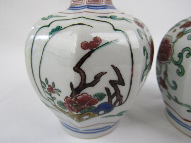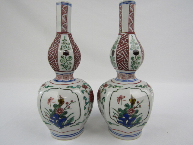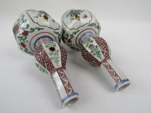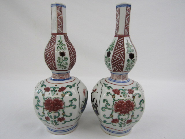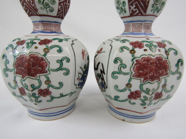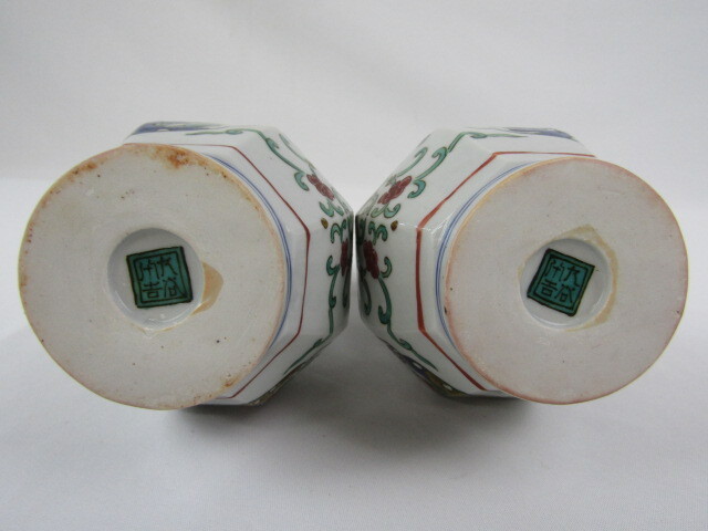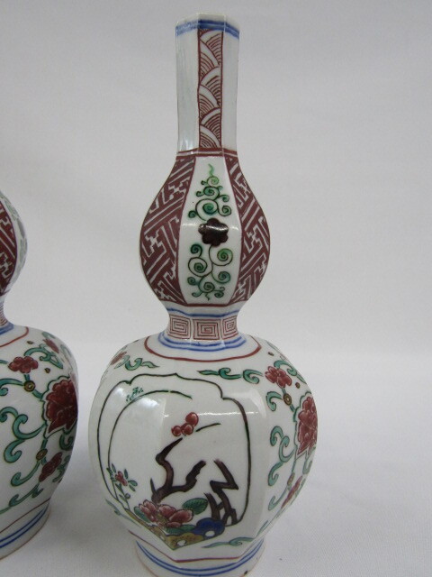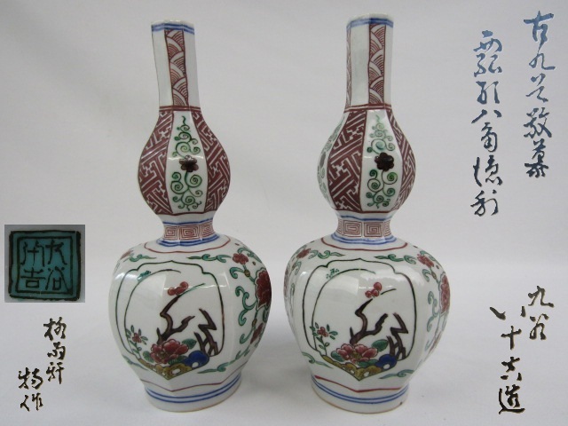 ◇九谷焼 柳雨軒 二代・徳田八十吉 「古九谷敬慕 瓢八角徳利」一対 0910-7◇