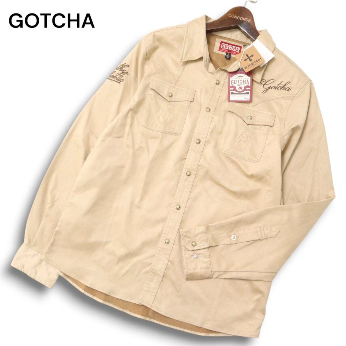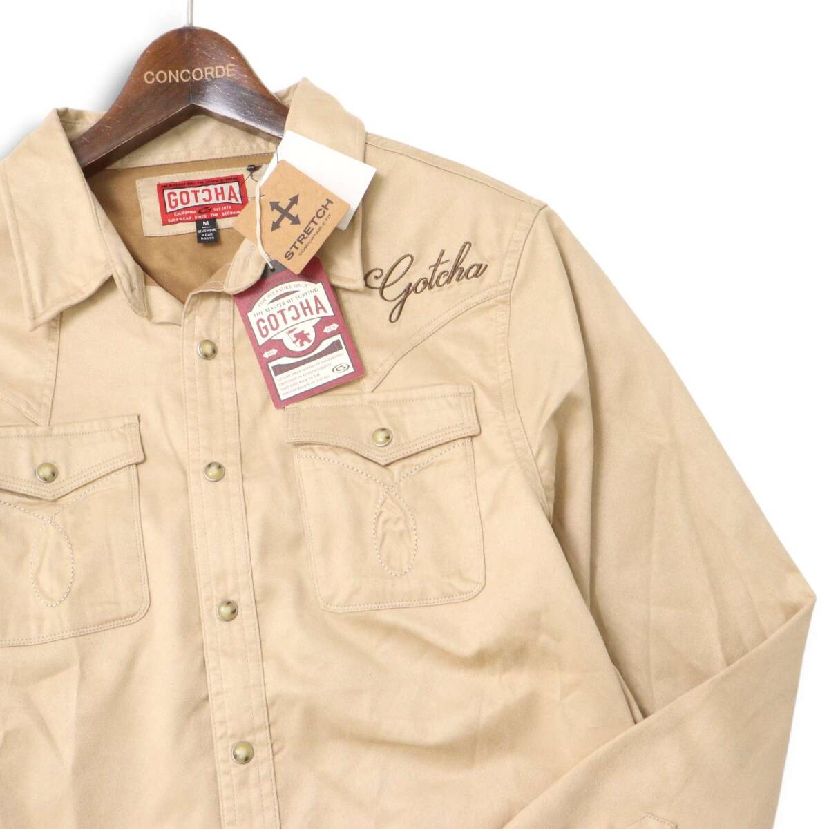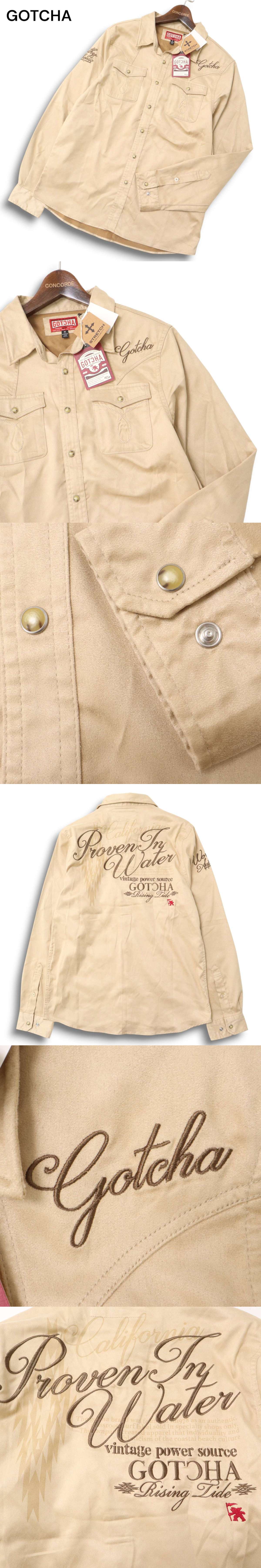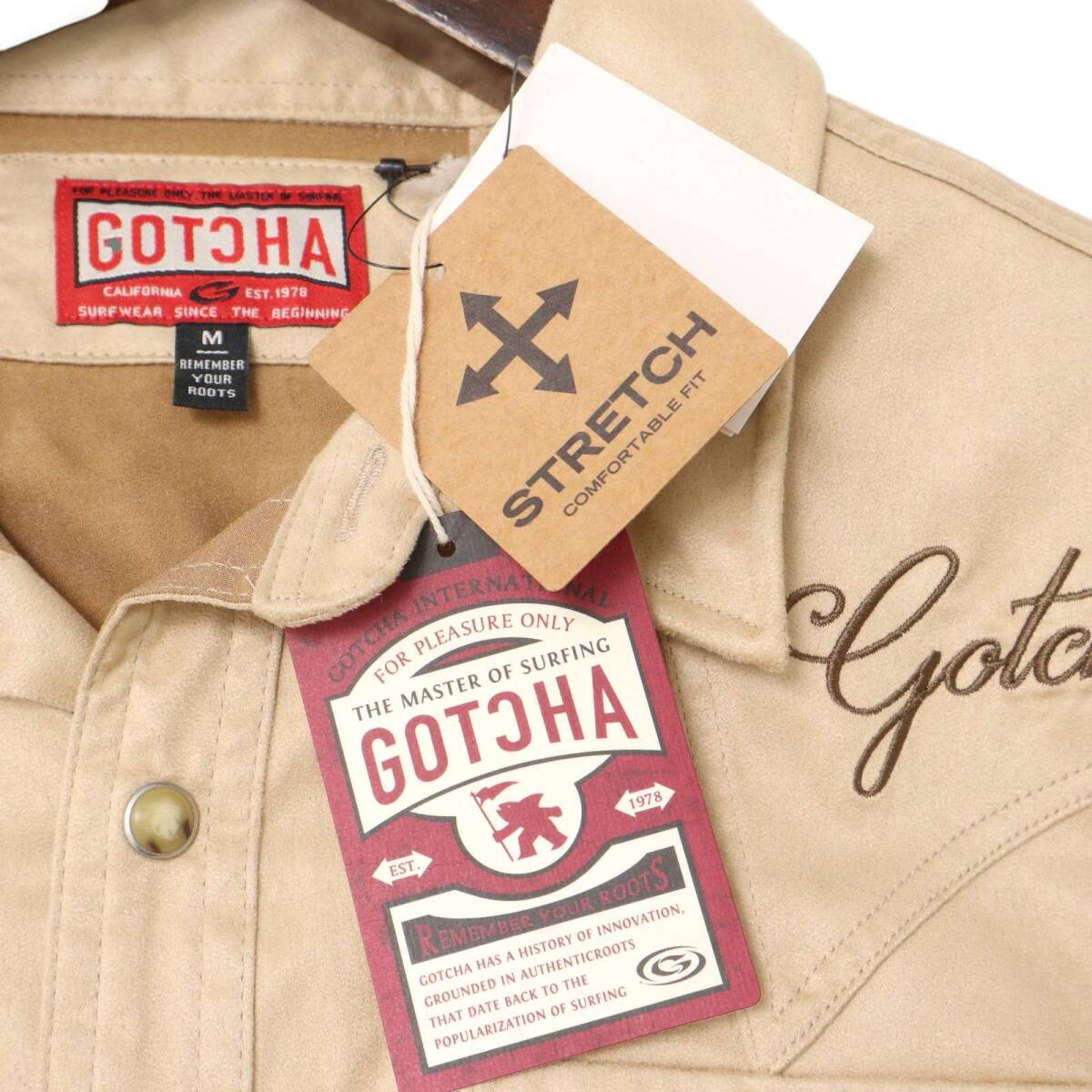 【新品 未使用】 GOTCHA ガッチャ 秋冬 フェイク スウェード★ ロゴ刺繍 長袖 ウエスタン シャツ Sz.M メンズ サーフ