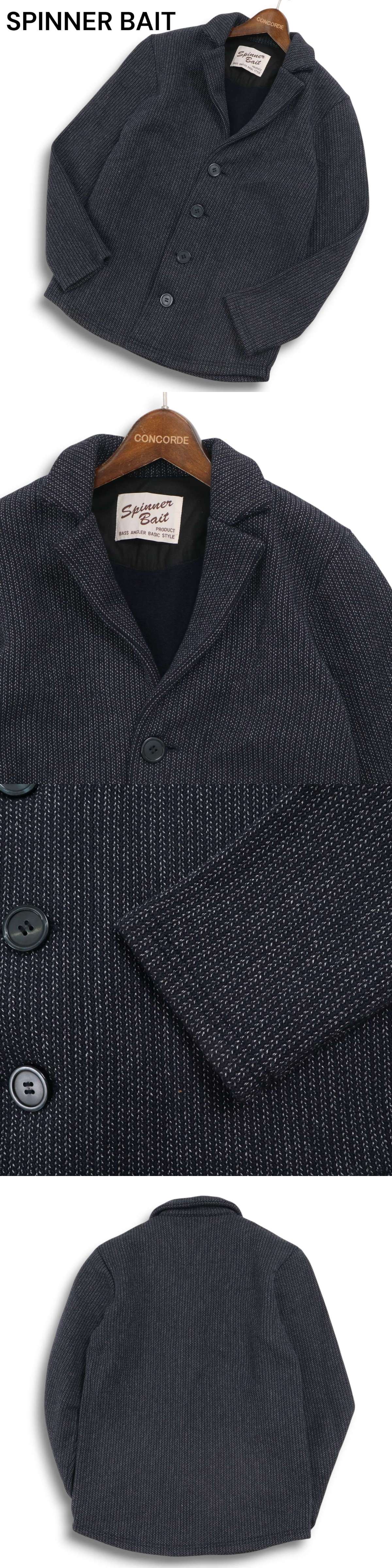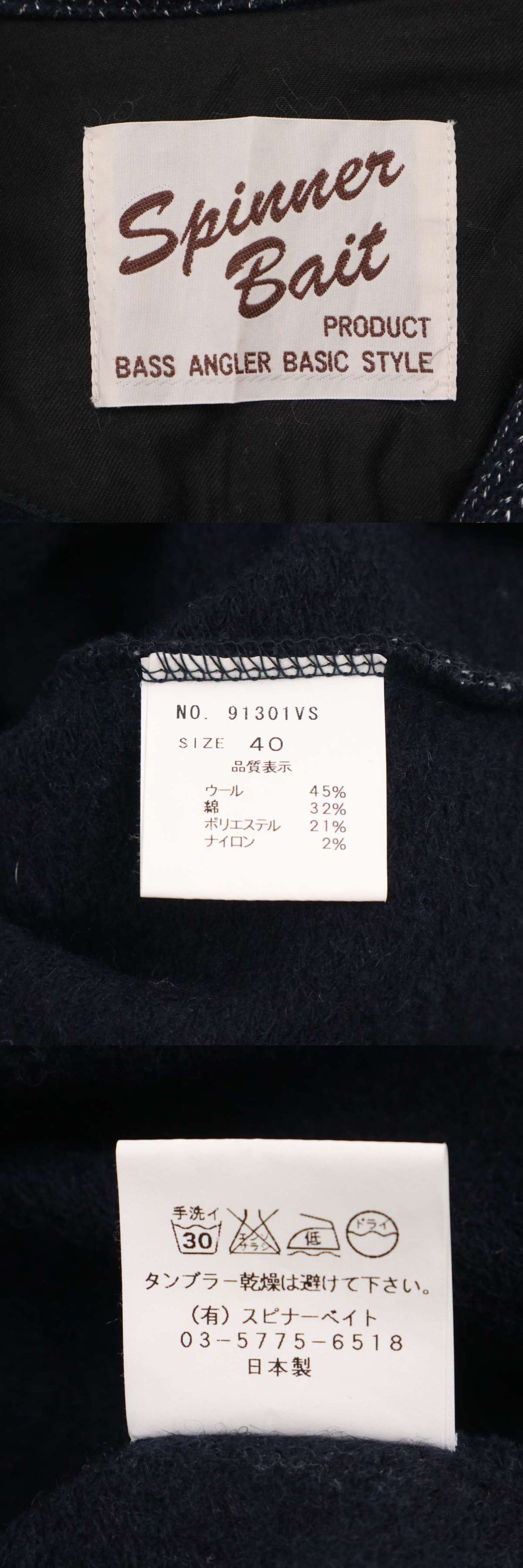 SPINNER BAIT スピナーベイト 秋冬★ ウール混 裏起毛 ニット ジャケット Sz.40 メンズ 紺 ネイビー 日本製