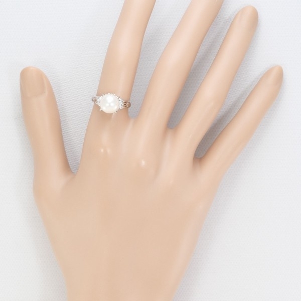 PT900 リング 指輪 10号 パール(真珠) 約8mm ダイヤ 0.06 総重量約5.2g 中古 美品 送料無料 | |