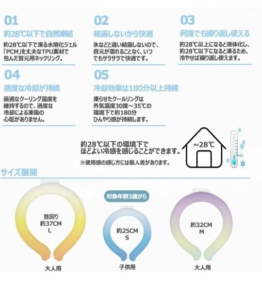 繰り返し使用:この冷却チューブは28℃以上になると液体化・28℃以下になると個体へ変化・冷やせば繰り返し何度でも使用可能です。