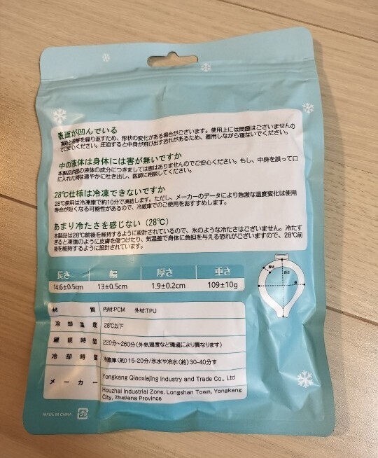 使い方:冷凍庫または冷蔵庫で15-20分、氷水や冷水約30分凍結します。!常温27℃以下のところに置いているだけで自然に冷やすことができます。冷蔵庫や冷凍庫に入れておけばわずか15-20分、または冷水につけて約30-40分おけば再び中身が固まりますので、急なお出かけの際にもすぐに冷やせます。