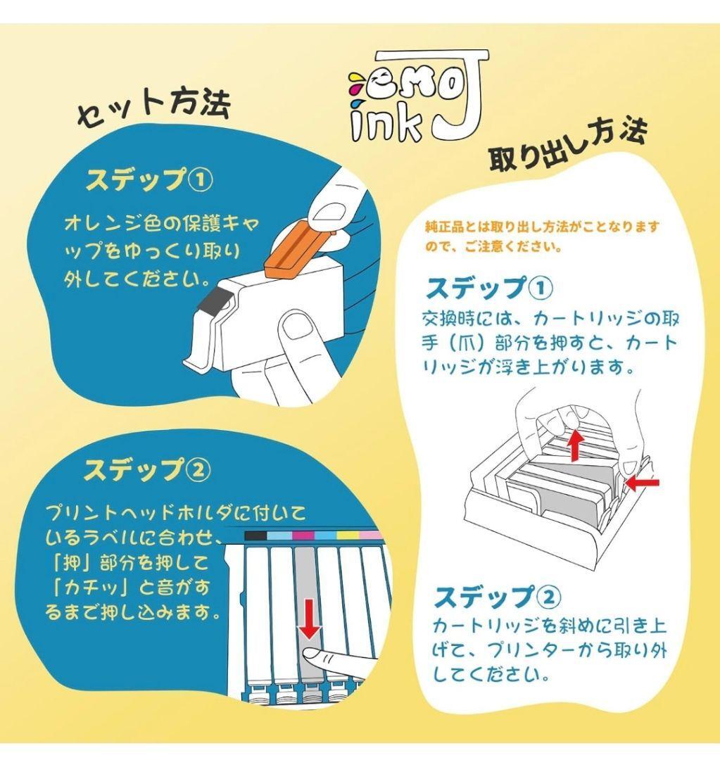 アマゾンにて2080円で購入致しました。 モデル名インクカートリッジ ブランドEmojink インクの色SAT-6CL BK C M Y LC LM 対応デバイスEP-712A EP-713A EP-714A EP-715A EP-716A EP-812A EP-813A EP-814A EP-815A EP-816A 特徴耐退色性 残量表示 互換インク, ledインジケーター 互換性オプション互換インク ■対応機種■ EP-712A / EP-713A / EP-714A / EP-715A / EP-716A / EP-812A / EP-813A / EP-814A / EP-815A / EP-816A ■製品型番■ SAT-6CL 6色 パック( ブラック シアン マゼンタ イエロー ライトシアン ライトマゼンタ ) ※メーカー純正品では御座いません。純正品同様にご利用いただける互換インクです。万一、初期不良の場合には速やかに交換、または返金させていただきます。 ■商品内容■ SAT-BK 3本 / SAT-C 1本 / SAT-M 1本 / SAT-Y 1本 / SAT-LC 1本 / SAT-LM 1本 総計8本セット 取り扱い説明書付き ■製品特徴■ 本製品はISO9001とISO14001のISO認定工場で生産しています。出荷前の厳密な検査のあと、丁寧に個別包装しております。2年の長期保存を実現。粒子の細かい染料インクで目詰まりにくい。残量検知に対応した最新のICチップ付き。純正品と併用可。 管理番号12 |