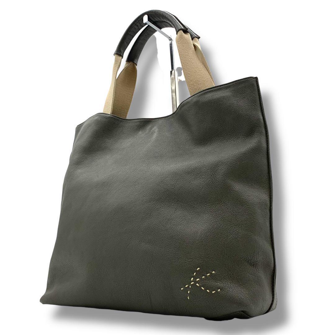 極美品 キタムラ レザー ハンドバッグ ダーク グリーン 手持ち