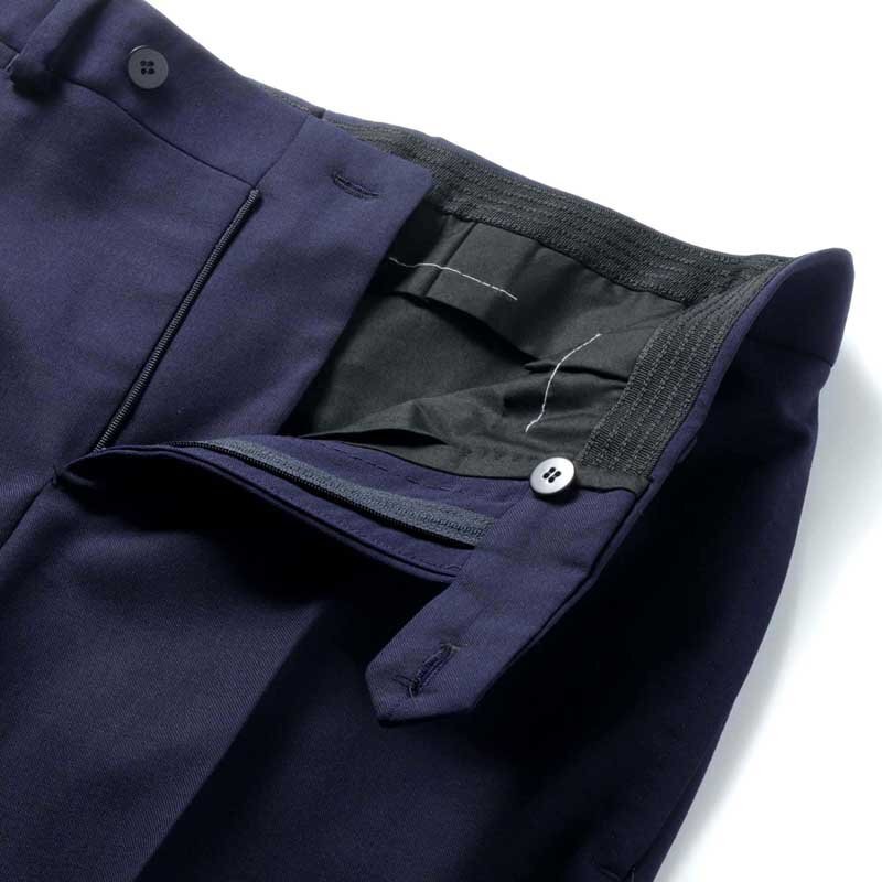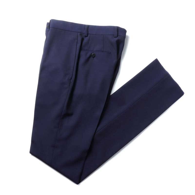 ・パンツは、クラシックながらも若々しいスーツスタイルが楽しめる、スッキリとしたスリムテーパードシルエット。誰しもが美脚が叶うスリムシルエットながら、安心感のある股上&細すぎないワタリで、窮屈さを感じさせない穿き心地。