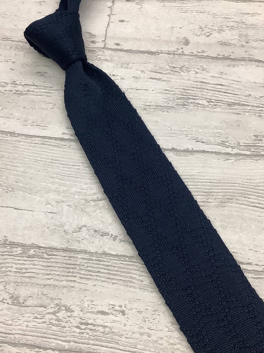 新作 新品未使用 可愛いワンポイントライン入り ニットタイ 濃紺 赤エンジ 大剣6cm お買い得サービス