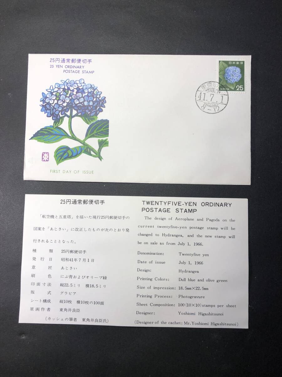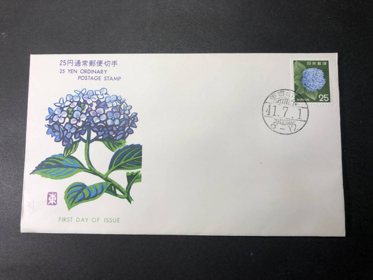★FDC 初日カバー★普通切手 第1次ローマ字入り 25円「あじさい」 普及協会版 昭和41年発行 Y8706